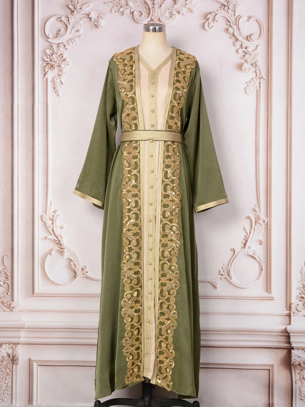 Naher Osten Mode Schwerindustrie Nagelperle eingelegter Diamant Muslimisches Gewand Damen langer Rock elegantes Abendkleid Kleid