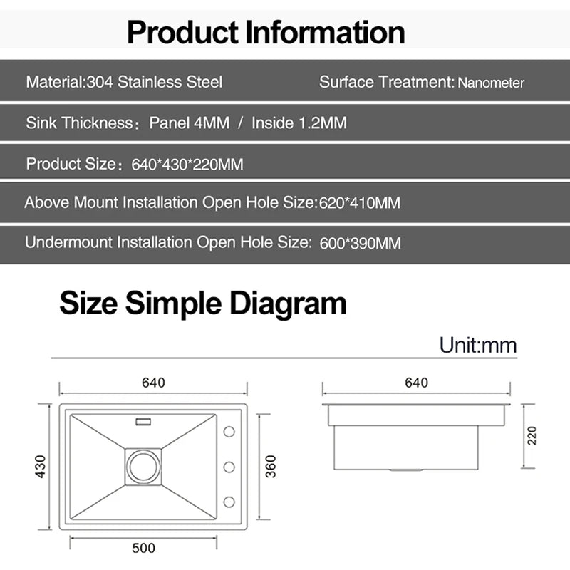 Nanometer Black Hidden kitchen Sink SUS 304 Stainless Steel 4mm Thickness Flip Cover Hidden Handmade kitchen Sinks