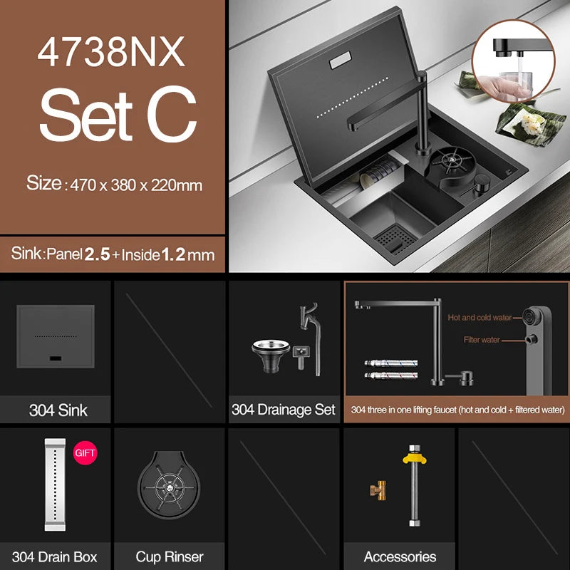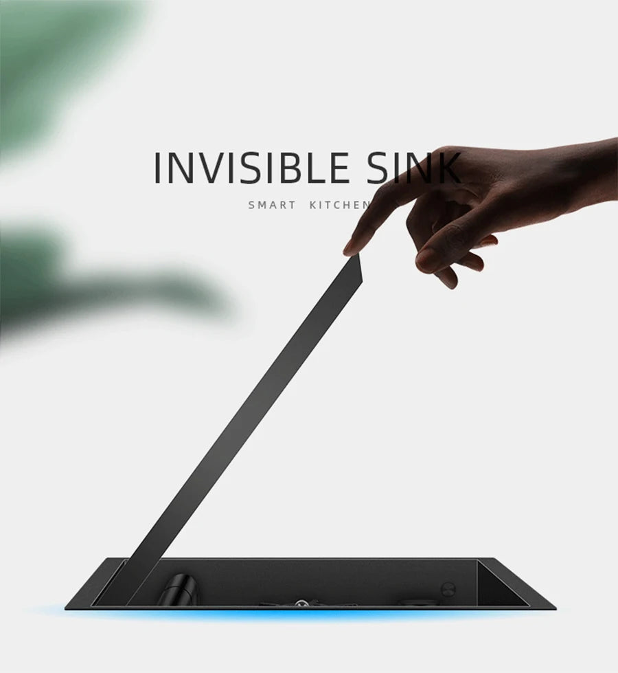 Nanometer Hidden Bar Island kitchen Sink 304 Stainless Steel Flip Cover Hidden Handmade Small Size kitchen Sinks With Cup Rinser