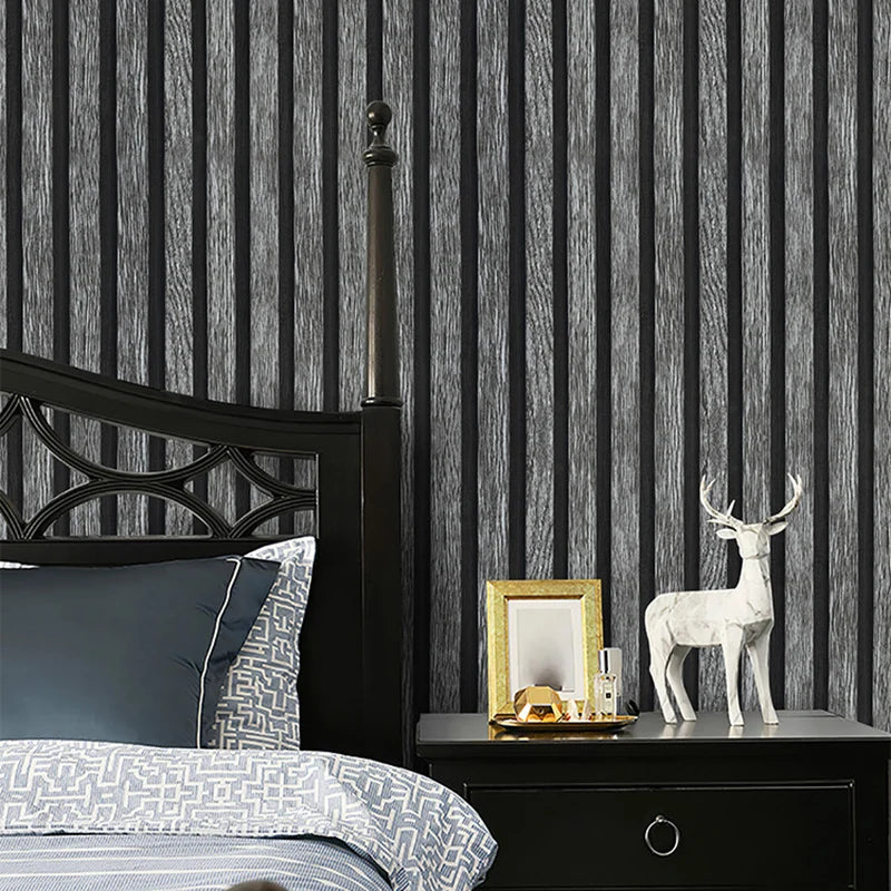 Neue schwarze und graue Gitterimitation Holzmaserung selbstklebende wasserdichte Tapete neue Hintergrundwandtapete im chinesischen Stil