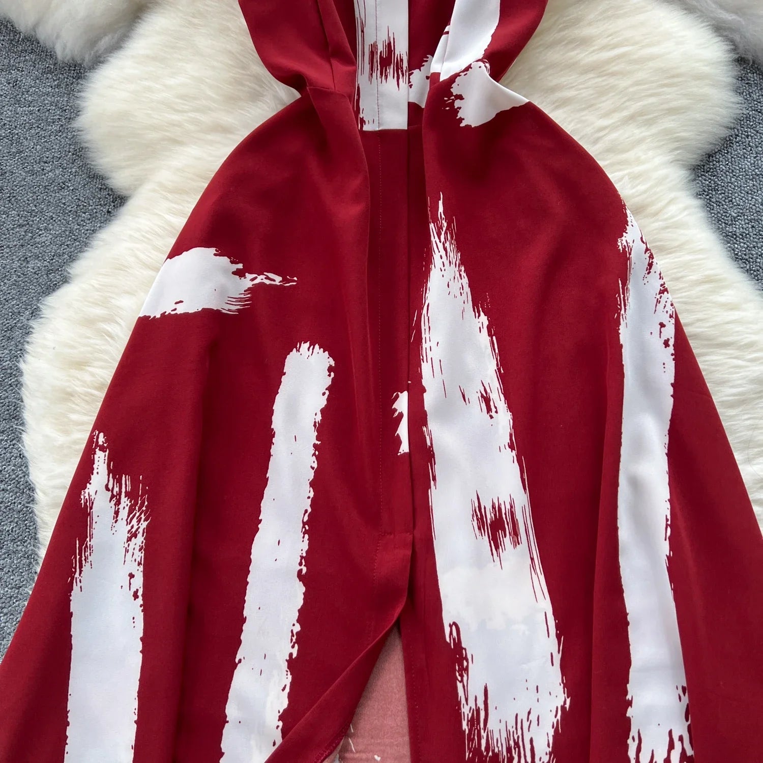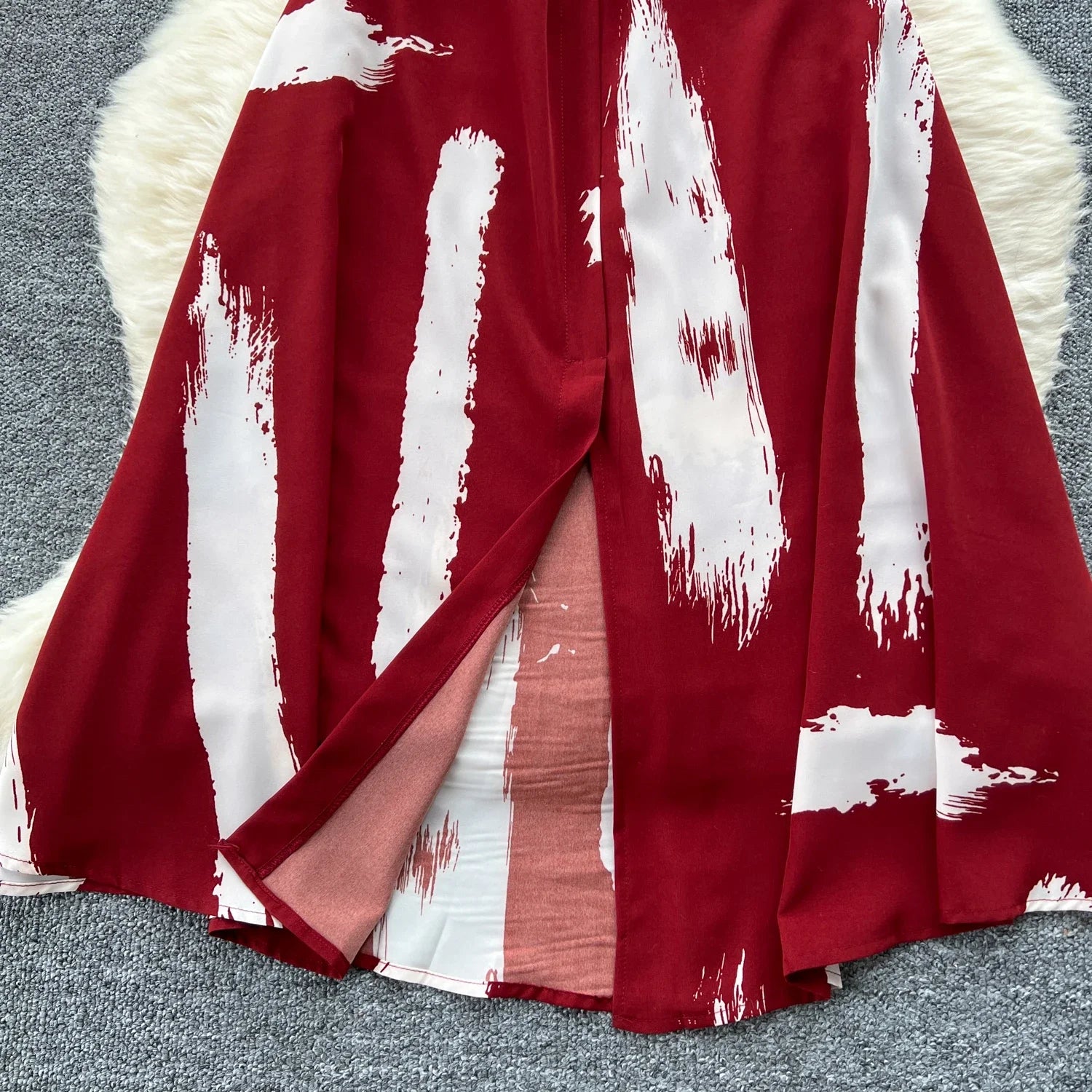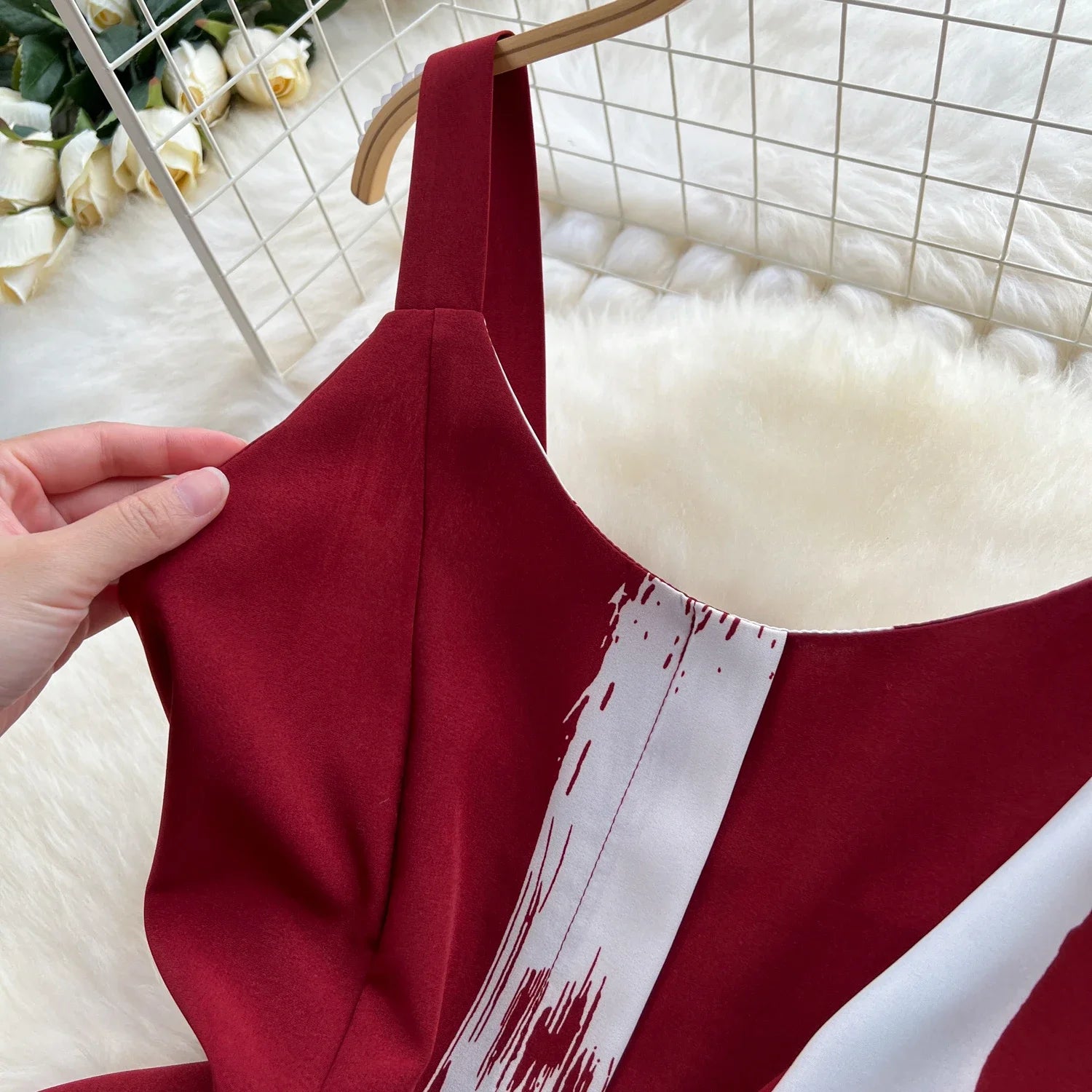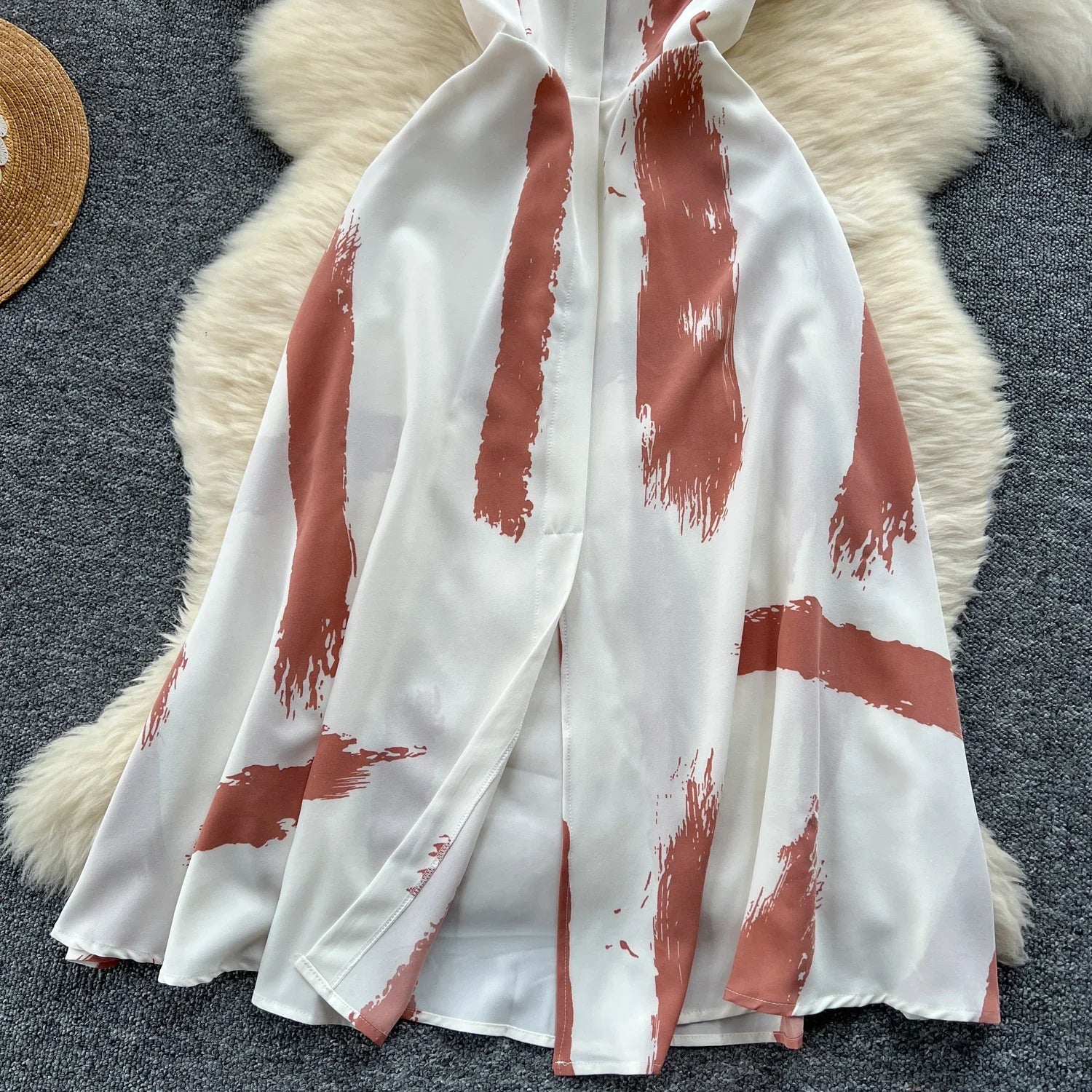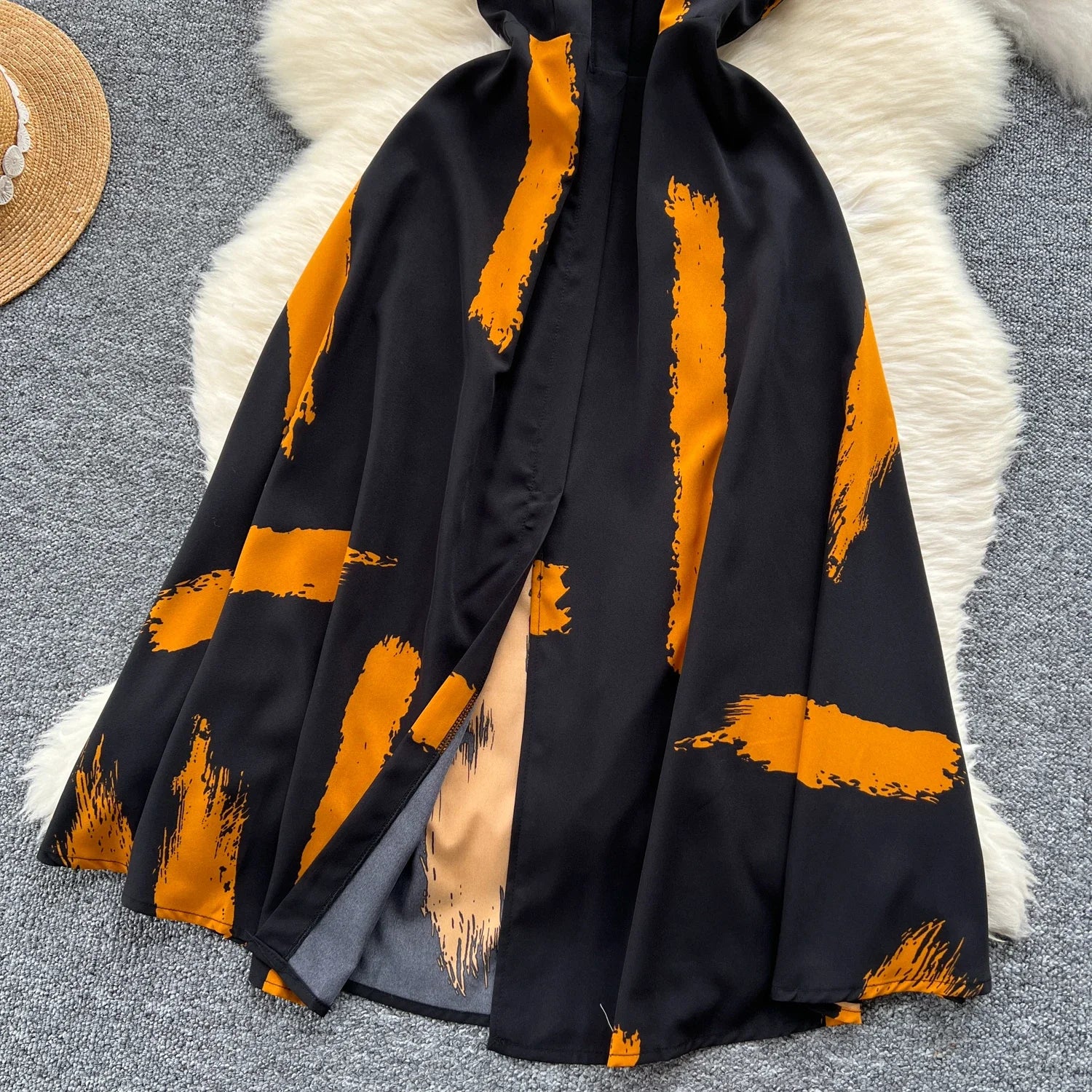 Neue Sommer Druck Süße Kleid Träger O Neck Backless Split Elegante Damen Urlaub Strand Party Midi Sommerkleid