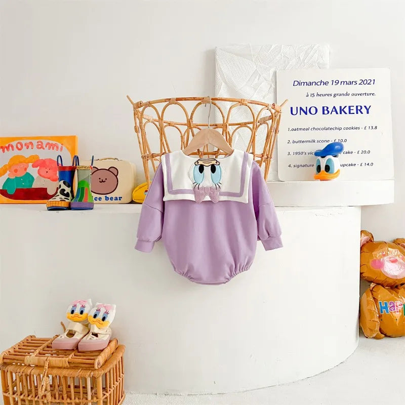 Neugeborenen Baby Strampler Socke Hut 3 stücke Set Cartoon Donald Daisy Ente Kleidung Jungen Mädchen Overall Infant Kurzarm Body k732