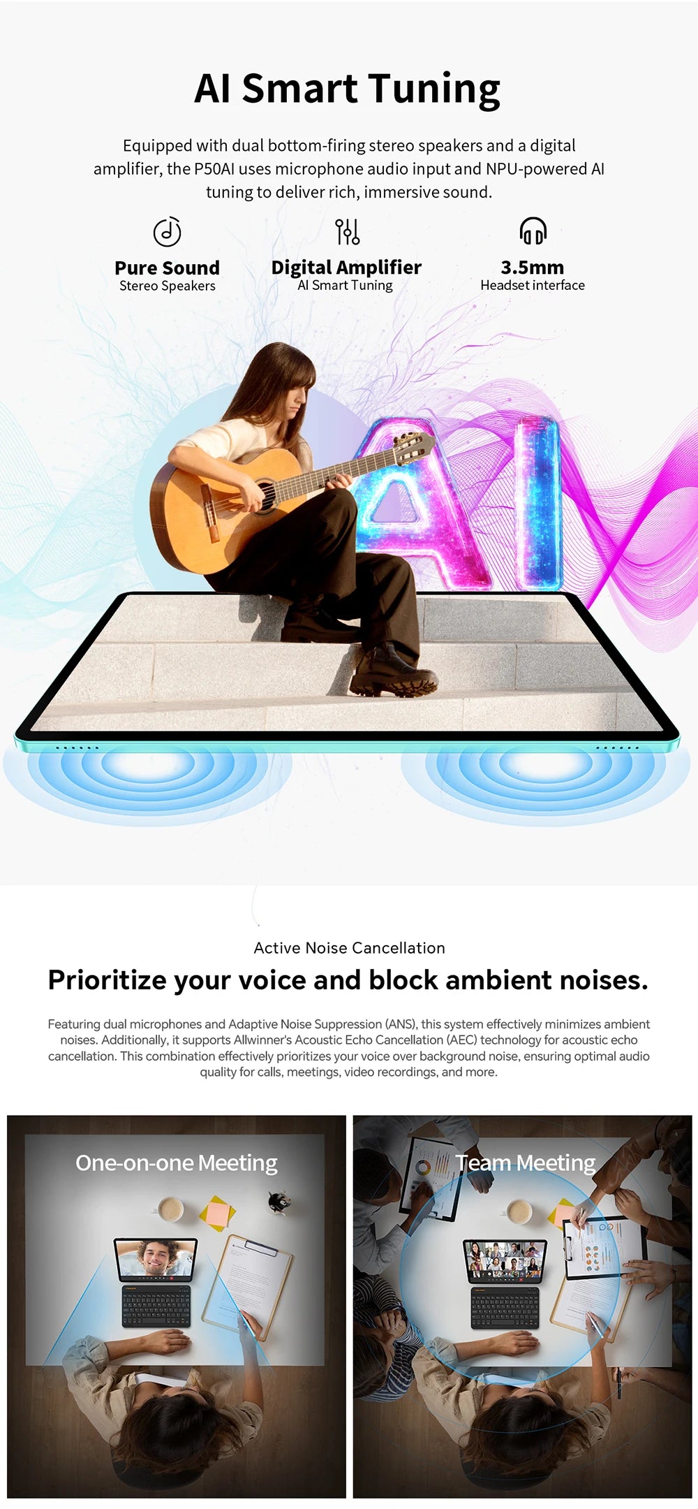 【New】 Android 15 Tablet Teclast P50AI 11 inch Screen 90Hz AllWinner A733-AI Octa-Core (6GB + 10GB )Max.16GBGB RAM 128GB LPDDR5 Wifi-6 7000mAh AI Tablet PC