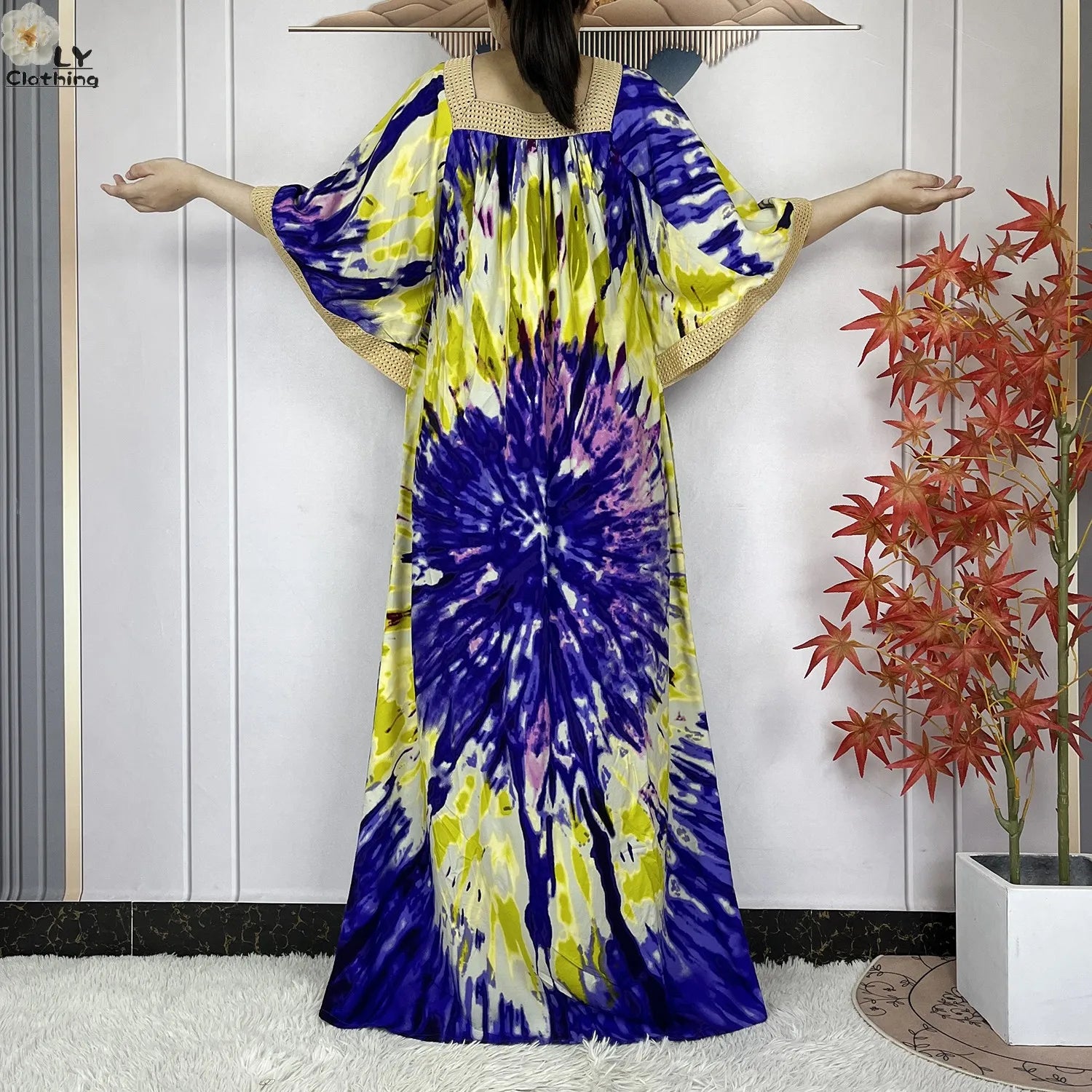 New Muslim Dress Woman Short Sleeve Dashiki African Abaya Tie-dyed Printing Cotton Loose Femme Robe Islamic Dresses With Scarf