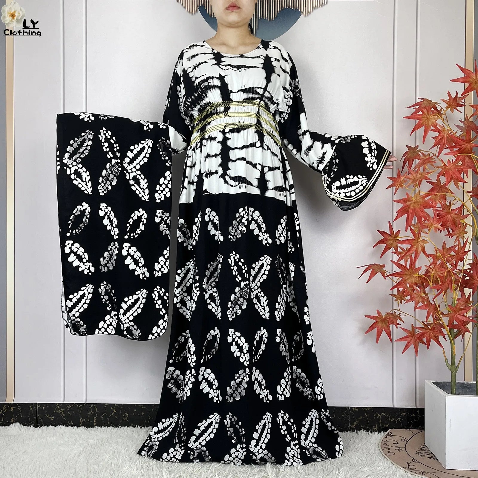 New Women Party Dress Dubai Muslim Summer Cotton Long Sleeve Collect Waist Boubou Maxi Islam Women Elegant Dress African Abaya