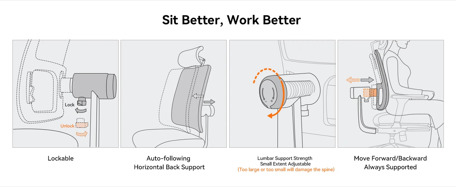 NEWTRAL MagicH-BP Ergonomischer Bürostuhl mit Fußstütze und Lordosenstütze, 4D Armlehne, Rückenlehne und Verstellbarem Kopfsitz, Schreibtischstuhl aus Mesh für Büro