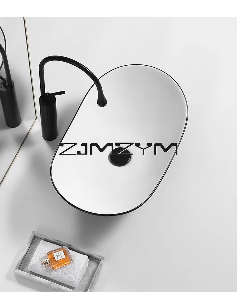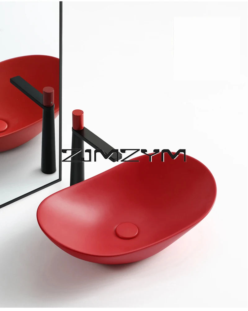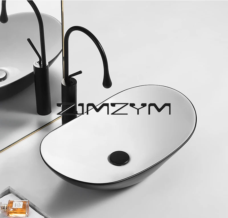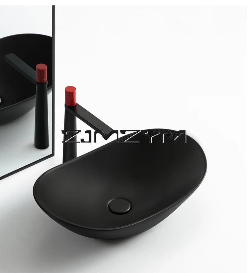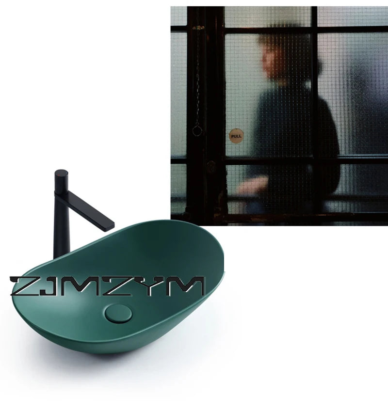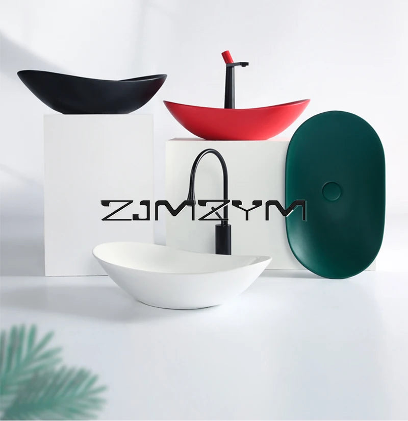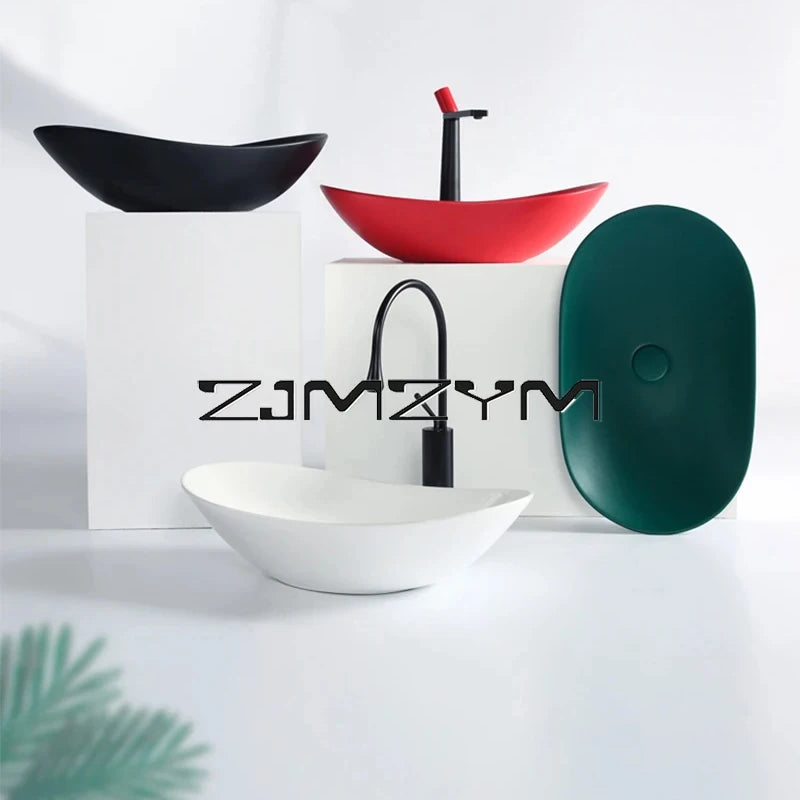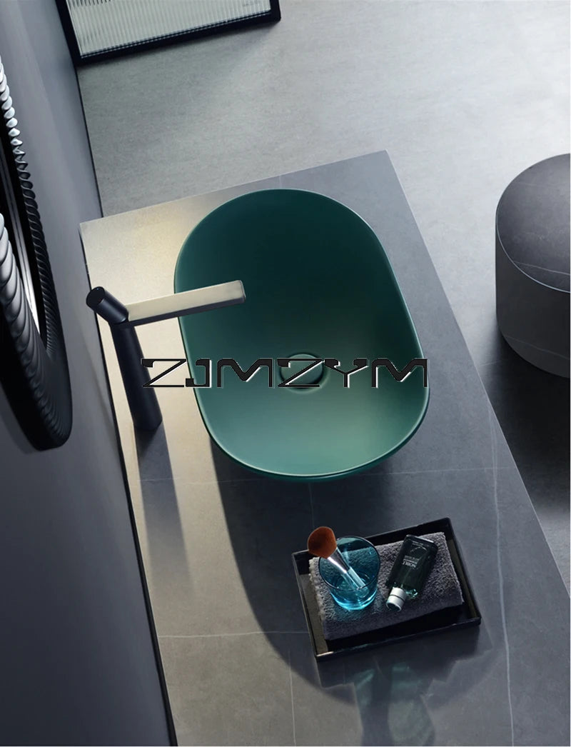 Nordic Keramik Gefäß Waschbecken Eitelkeit Schüssel Oval Badezimmer Tisch Waschbecken Toilette Balkon Kunst Becken Über Theke Sockel Waschbecken