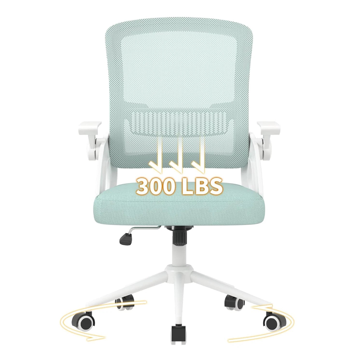 Office Chair Ergonomic Mesh Flip-Up Arms Office Chairs with Mid Back Cushion Lumbar Support Gaming Chair for Home