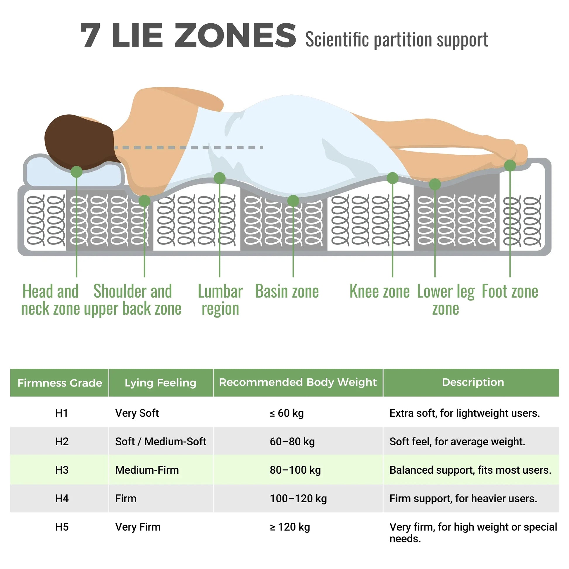 Orthopädische Kaltschaummatratze, 90 x 200 cm, mit 7-Zonen-Taschenfederkern, Festigkeitstufe H3 (mittelfest)