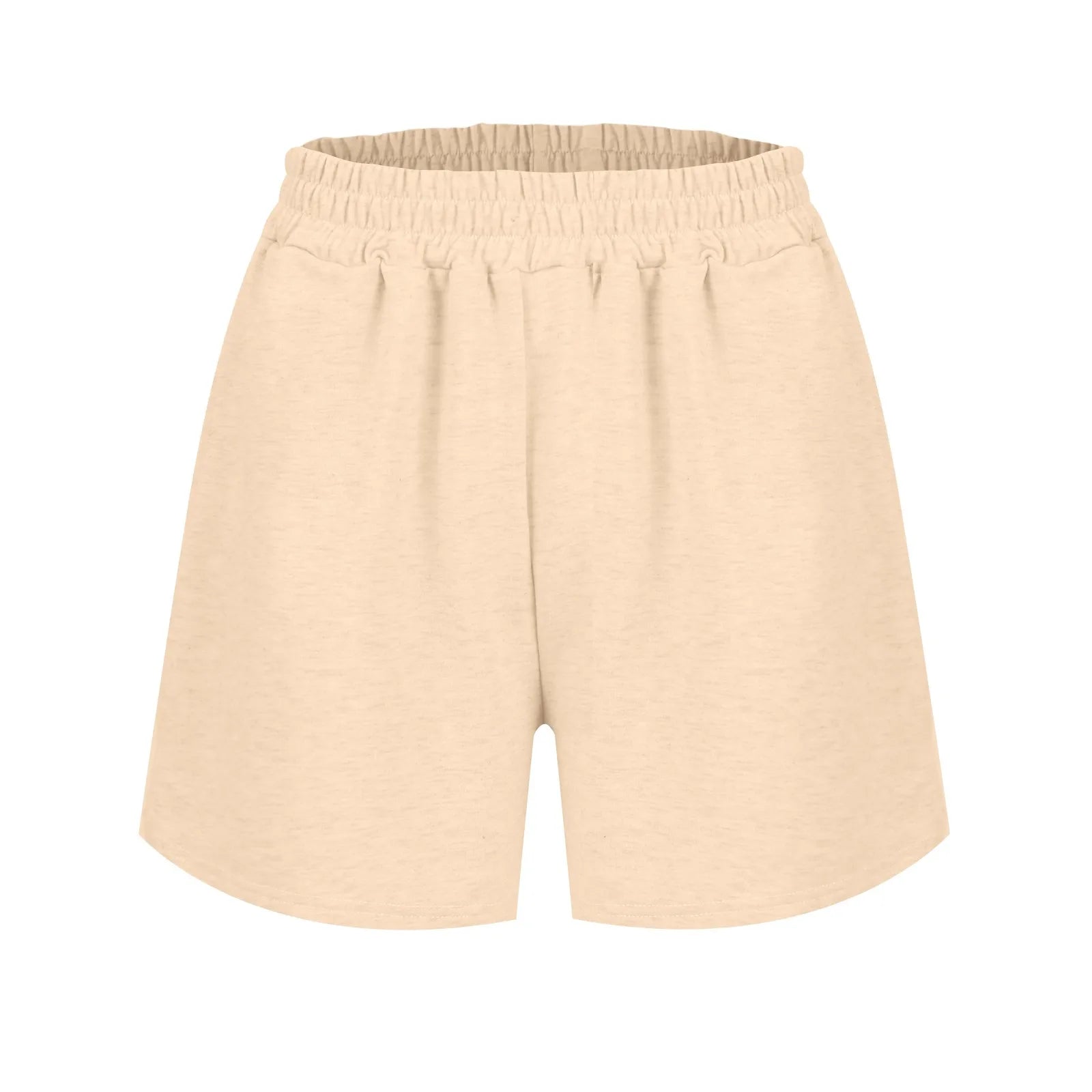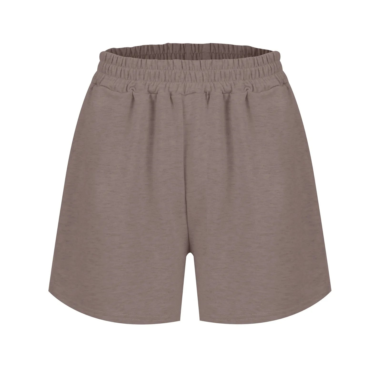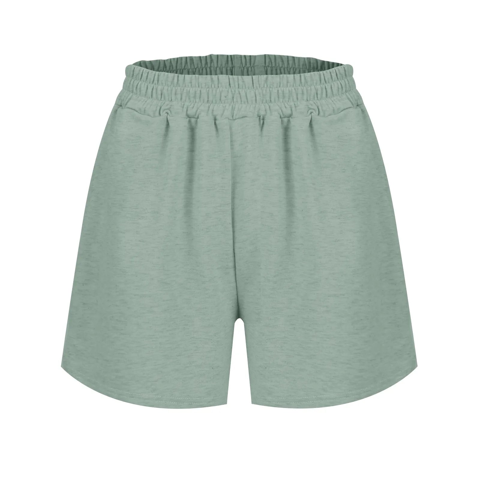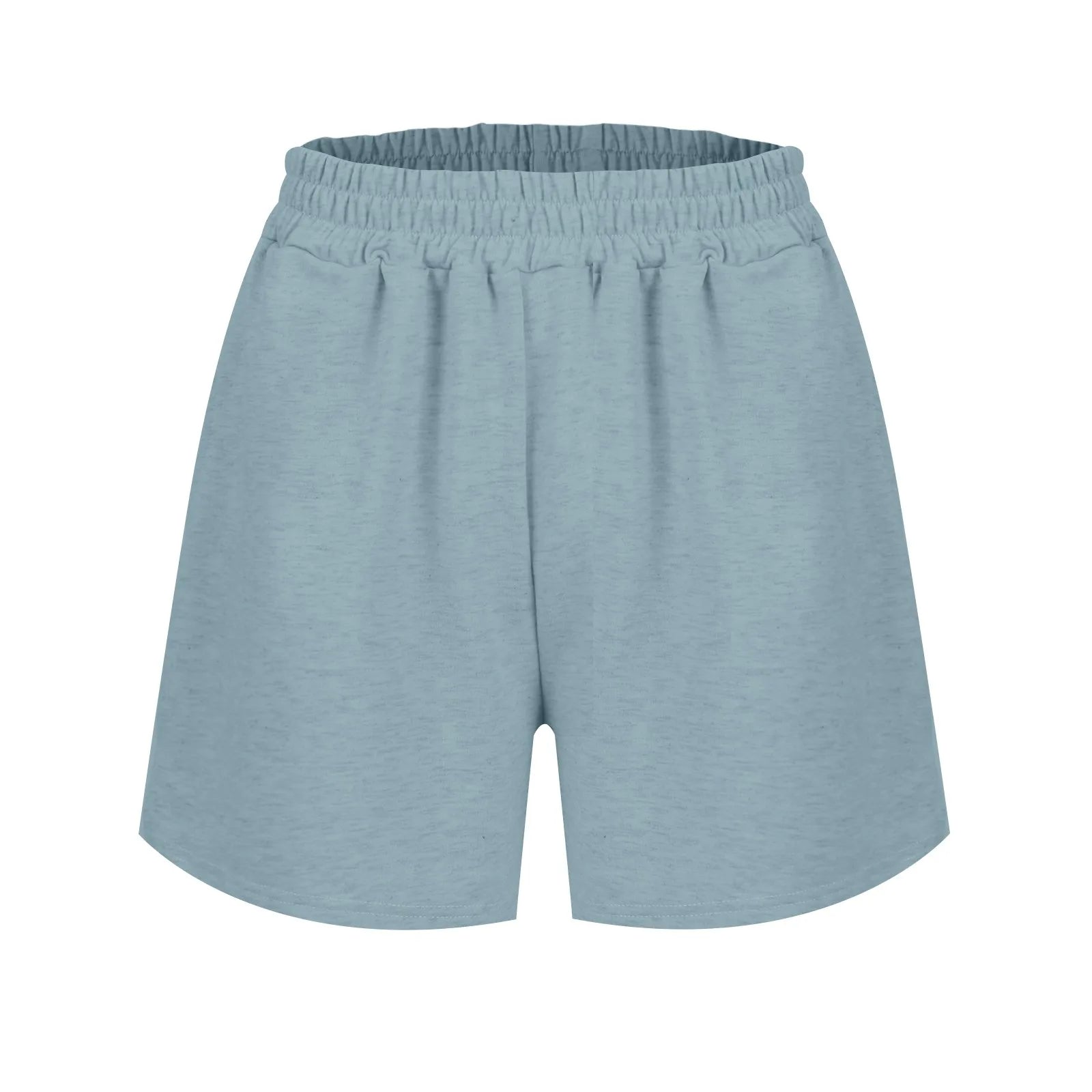 Plain Color Sports Shorts Casual Summer Comfortable And Soft Elastic High Waist Running Shorts With Pockets For Women