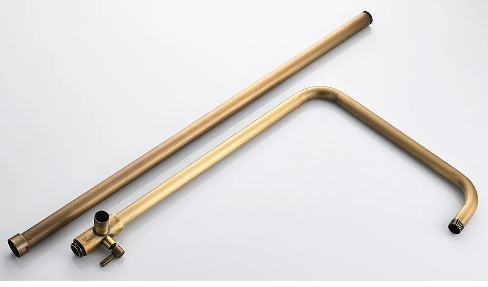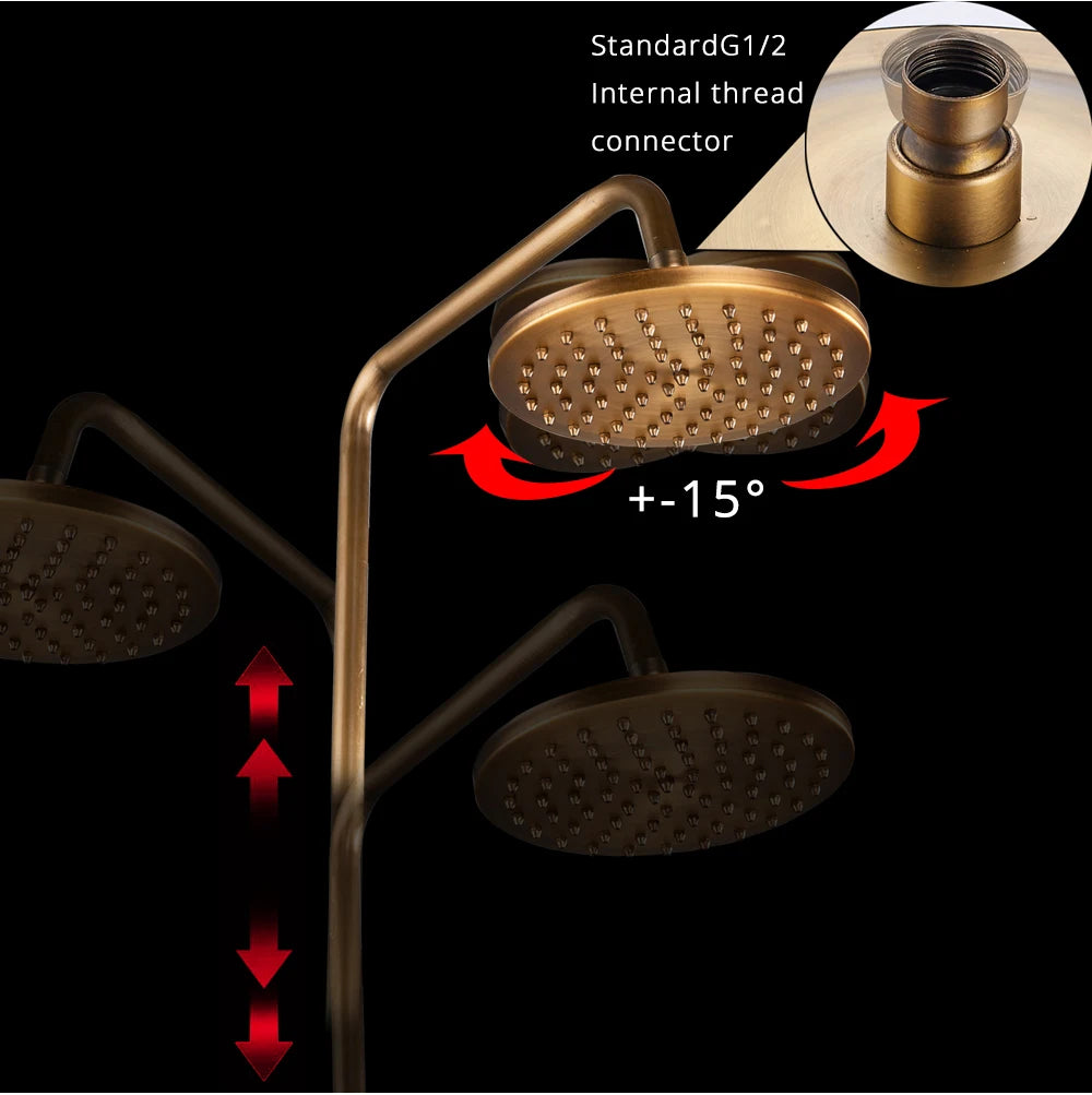 POIQIHY Antique Shower Set Wall Bathroom Bath Shower Faucet Rainfall Brass Swivel Spout Mixer Tap Sliding Bar Shower System