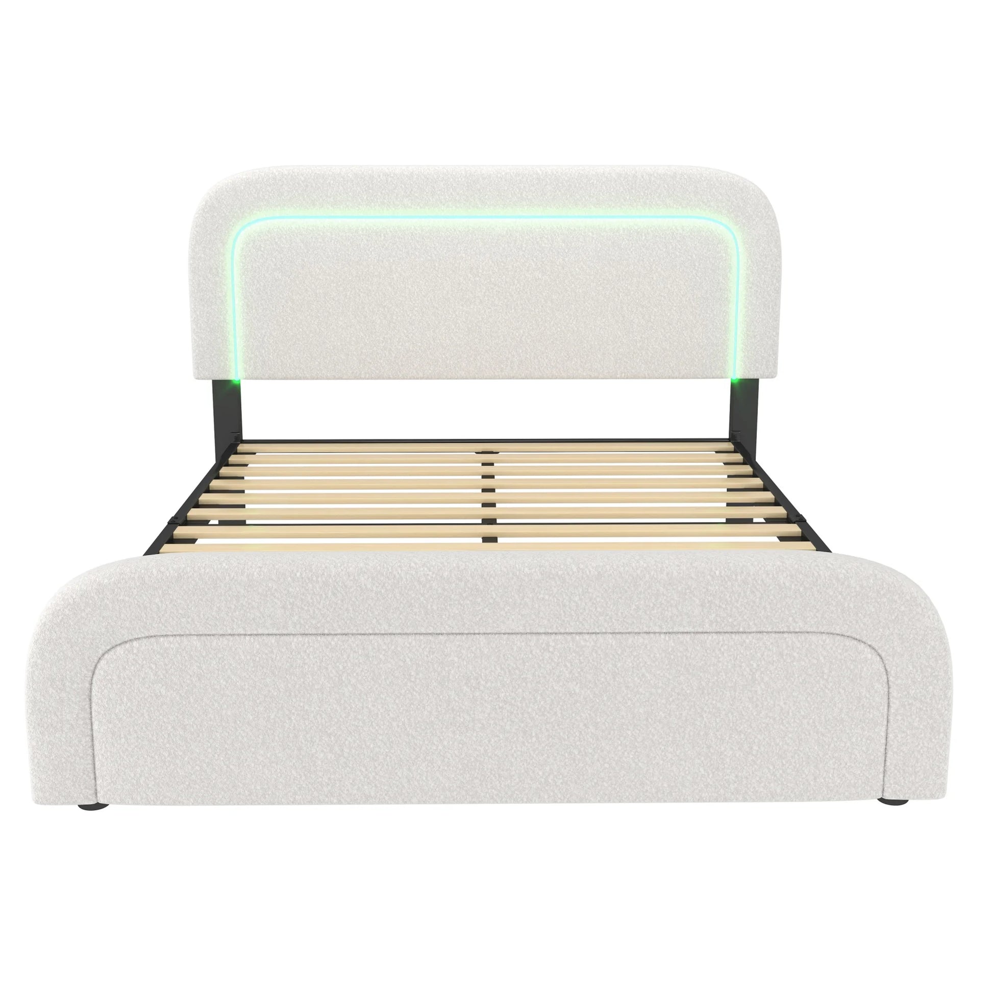 Polsterbett Doppelbett mit USB-Ladeanschluss,LED-Beleuchtung, Funktionelles bett mit Höhenverstellbarem Kopfteil(Ohne Matratze)