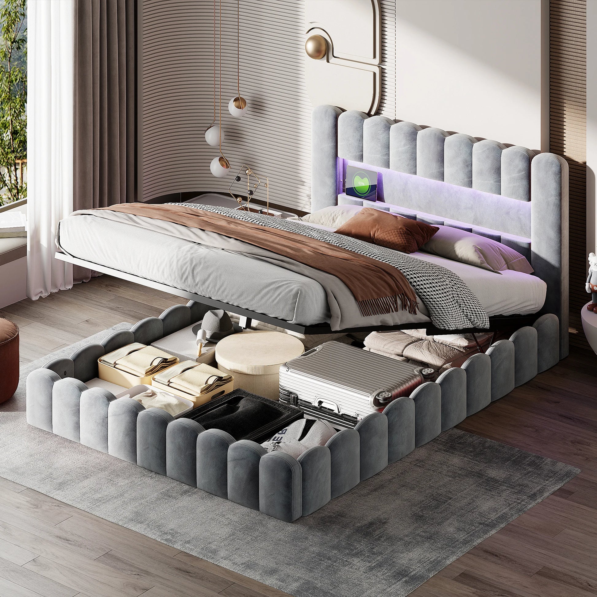 Polsterbett,Eingebettete Matratze,Doppelbett mit weicher Rückenlehne,Kopfteil mit LED und USB-Anschluss,ohne Matratze