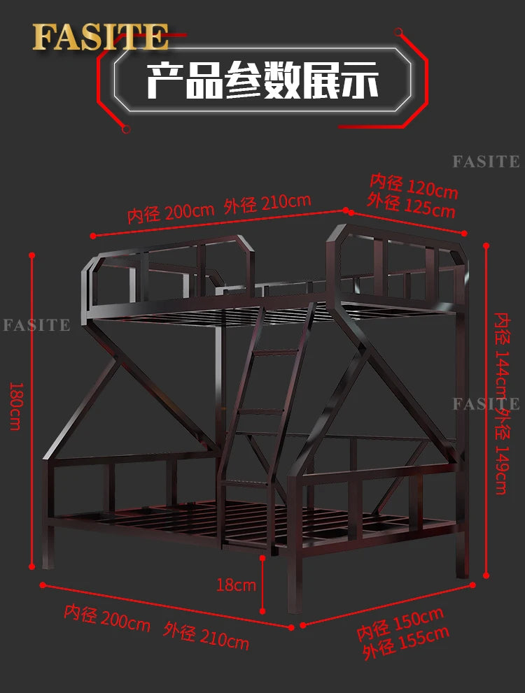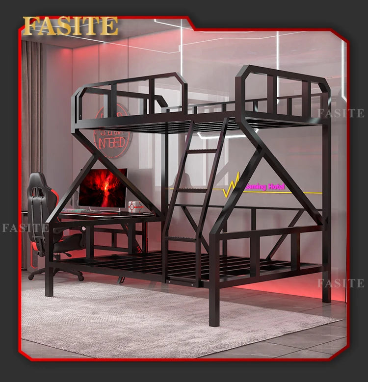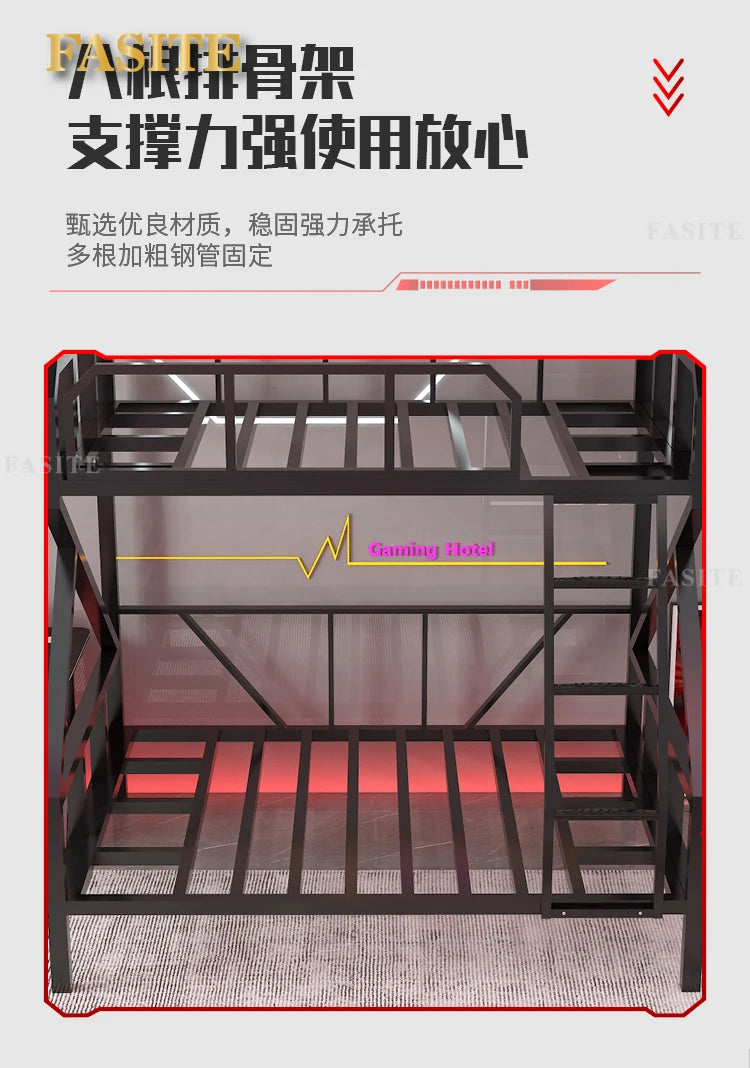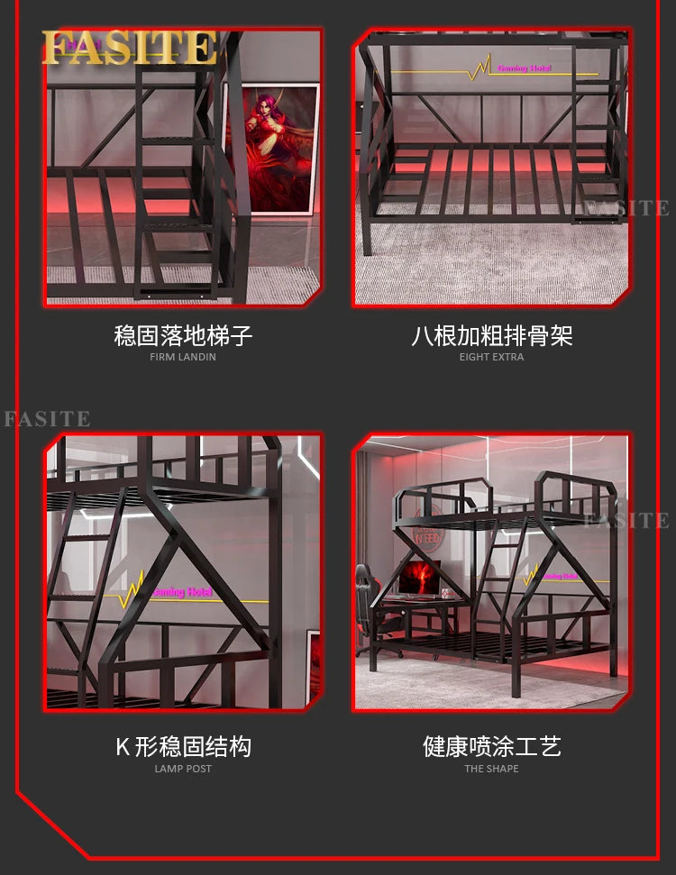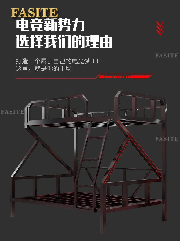 Premium E-Sport-Etagenbett aus Eisen, Hotel, Apartment, Schule, Schlafsaal, Bett, schwarzer Rahmen, Hochbett für Erwachsene, Camas, Schlafzimmermöbel