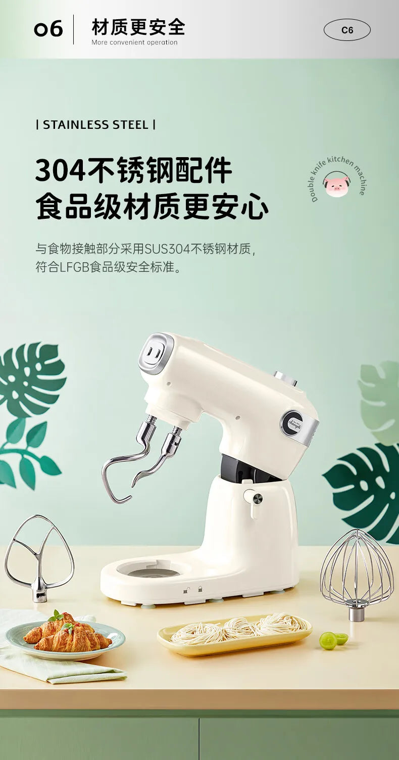 Premium Food Mixer with Dual Blades, Automatic Kneading Large Touchscreen and DC Motor for Quiet Operation 220V