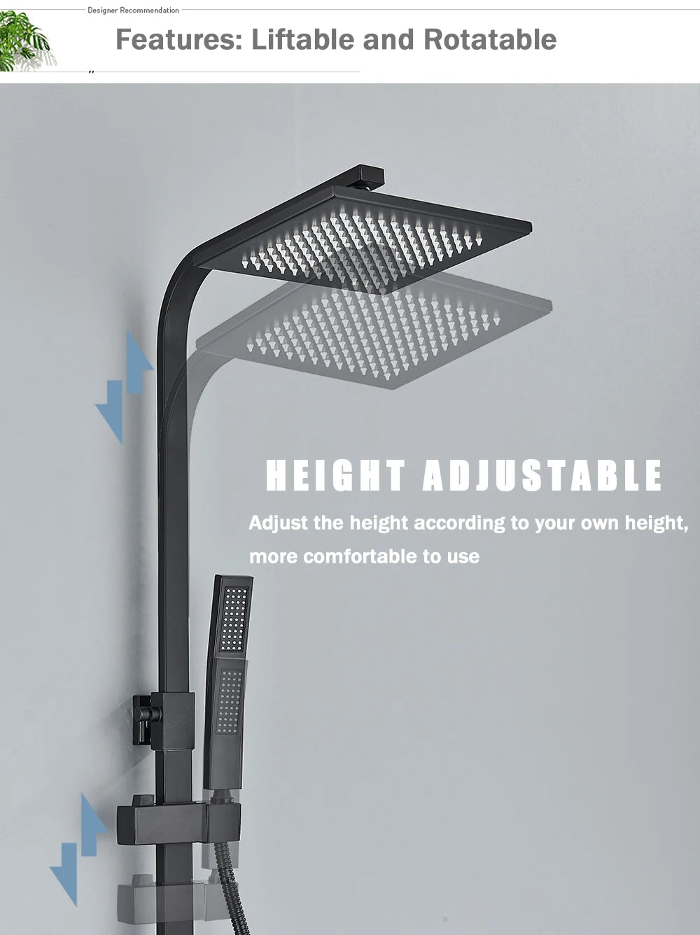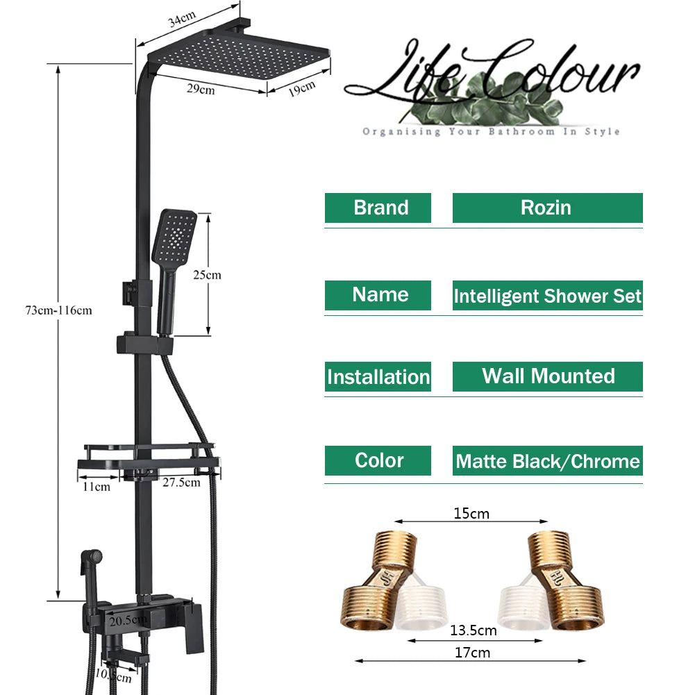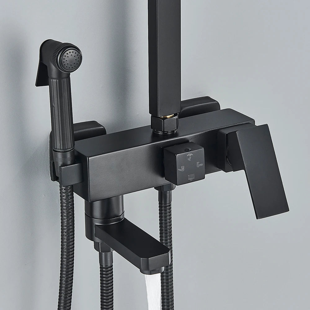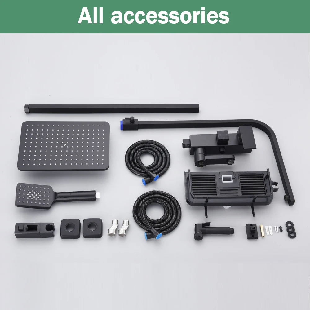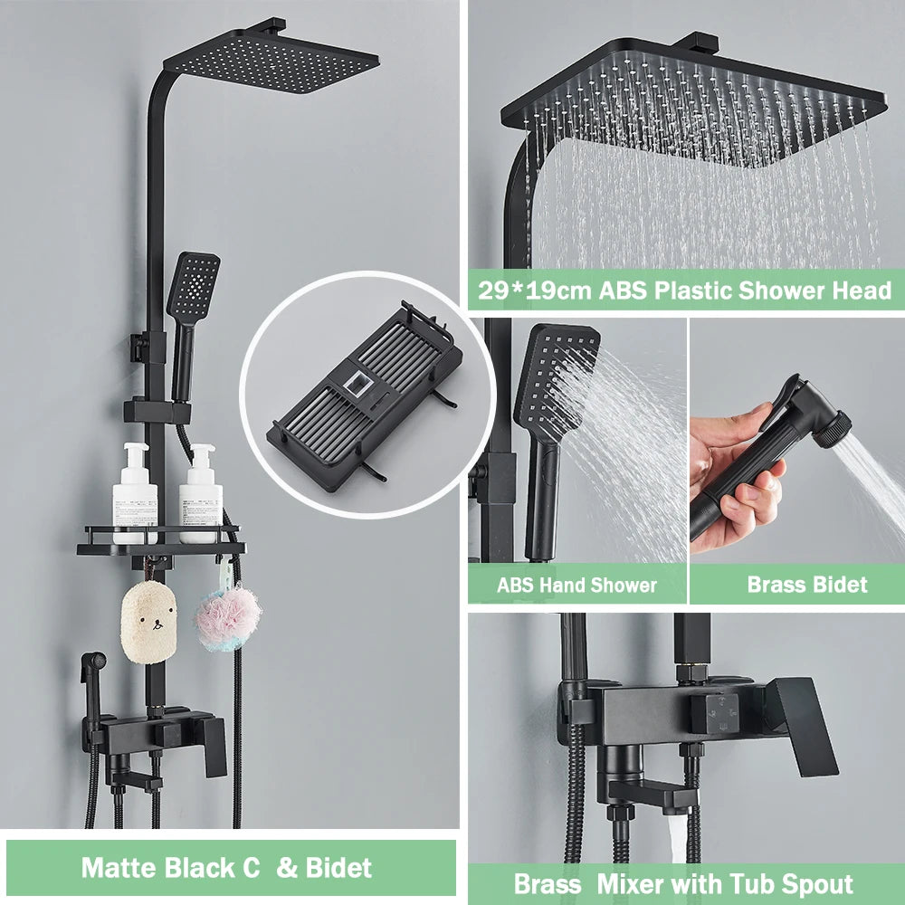 Rainfall Bathroom Shower Faucet Kit With Bidet Wall Mounted Stainless Steel Hot Cold Water Mixer Tap System With Rack,Tub Spout