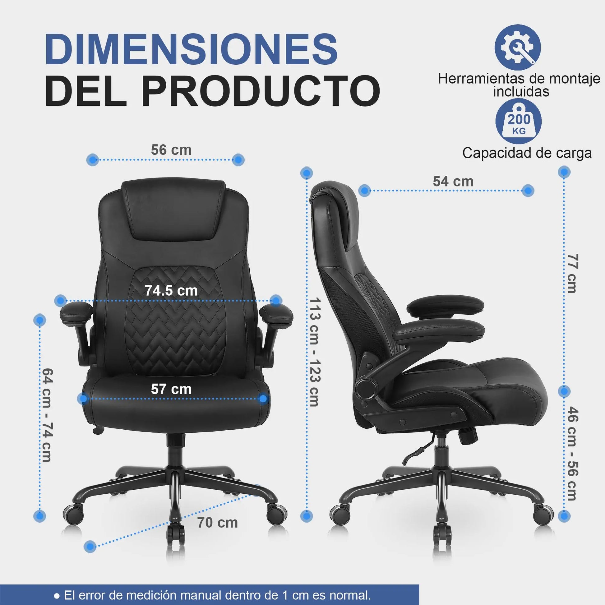 Ralex-Stuhl Ergonomischer Bürostuhl mit 200 kg Tragkraft, PU-Leder-Schreibtischstuhl mit Lordosenstütze und hochklappbaren Armlehnen,