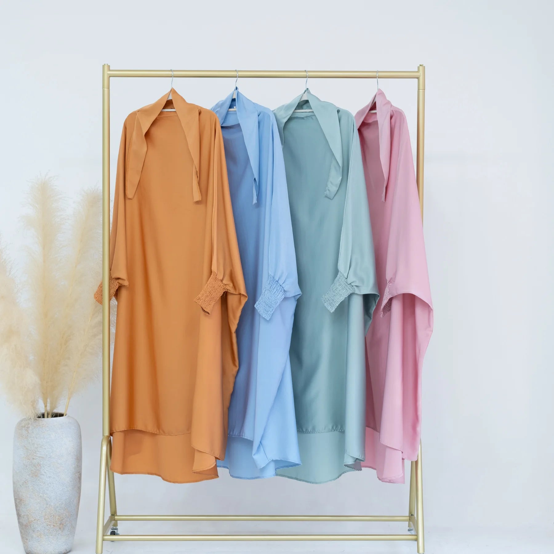 Ramadan Muslim Robe 2 Piece Set Mommy & Kids Prayer Garment Hijab Dress Women Girls Hooded Abaya Niqab Islam Dubai Eid jilbab