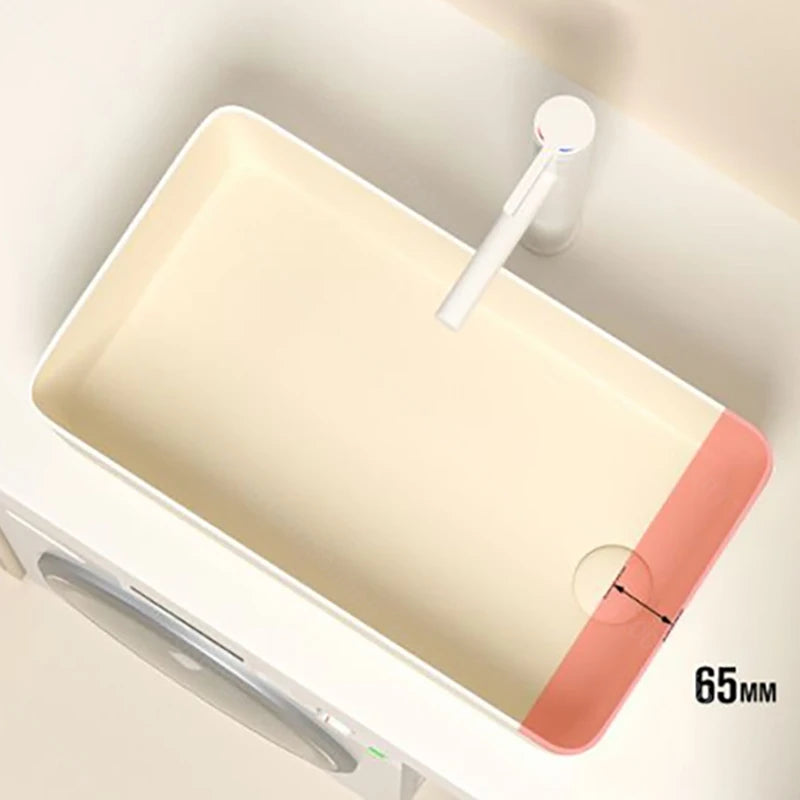Rechteckiges Waschbecken aus Porzellan-Keramik für Badezimmer, modernes Waschbecken über der Theke mit Abflussset, Waschtischwaschbecken auf der Arbeitsplatte