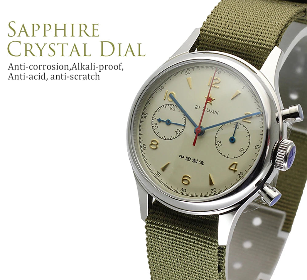 RED STAR 38mm Men's 1963 Chronograph Mechanical Watch Pilot with Seagull Movement ST1901 Air Force Aviation Sapphire Goose 40mm