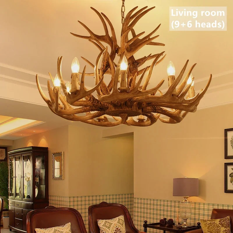 Retro Harz Geweih führte Kronleuchter Restaurant Zimmer Schreibtische Loft Decke Pendel leuchten Home Decoration Zubehör Leuchte