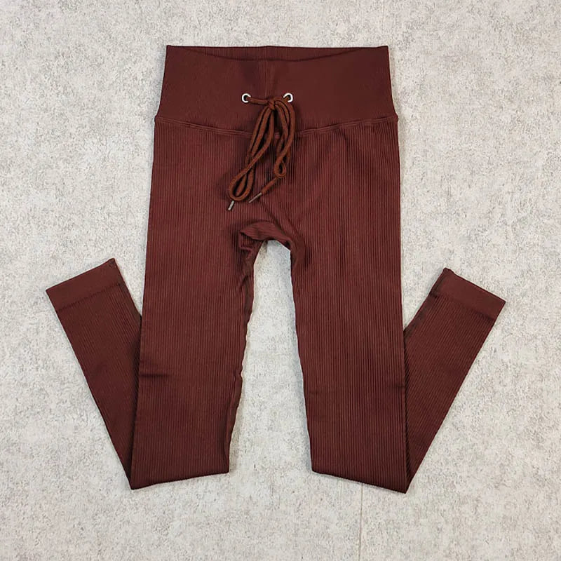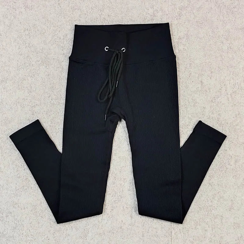 Ribbed Yoga Leggings Sports Tights Women Seamless Knit Yoga Pants White Femme Gym Leggings Skinny Workout Fitness Push Up