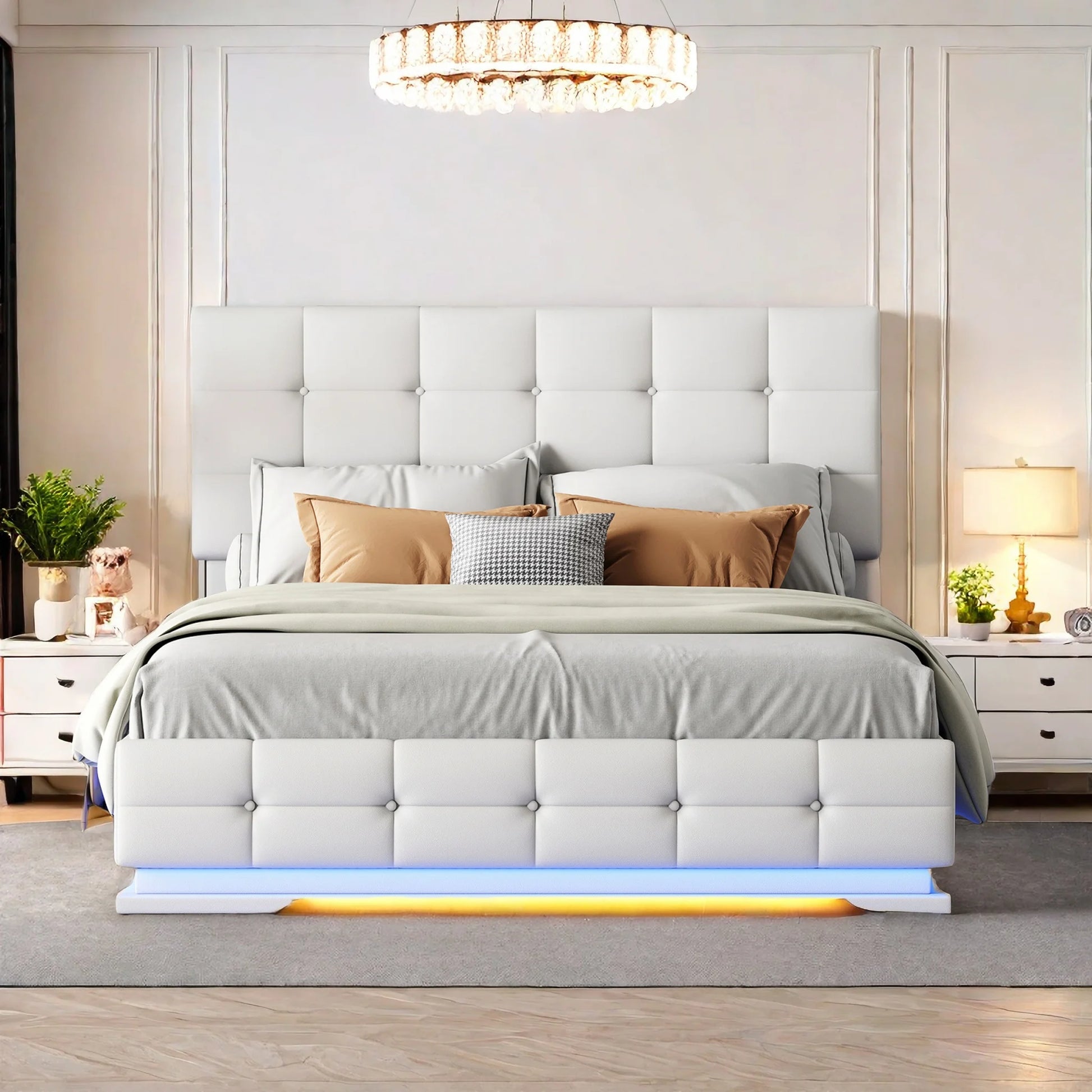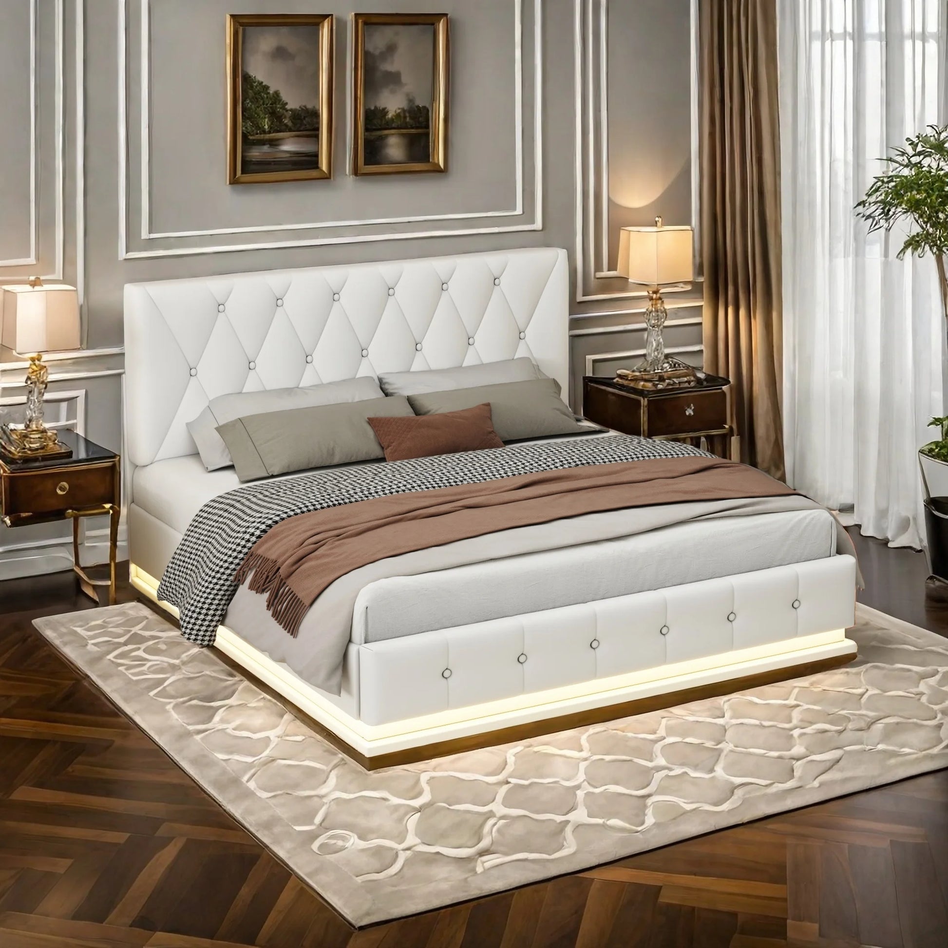 ROSAHQNDA 140x200 cm Polsterbett, PU-Lederbett mit LED- und USB-Anschlüssen, hydraulisches Boxbett, Kunstleder, ohne Matratze