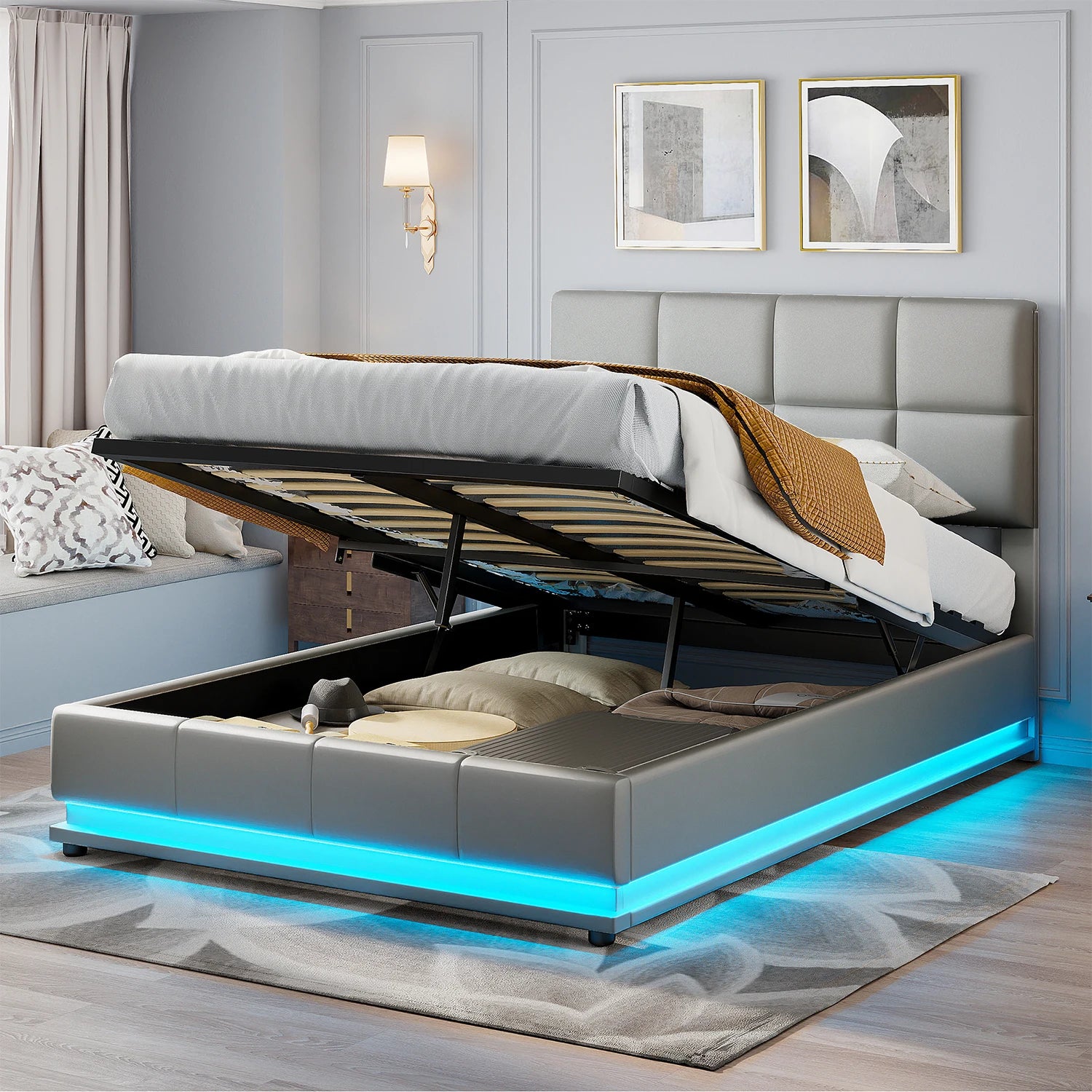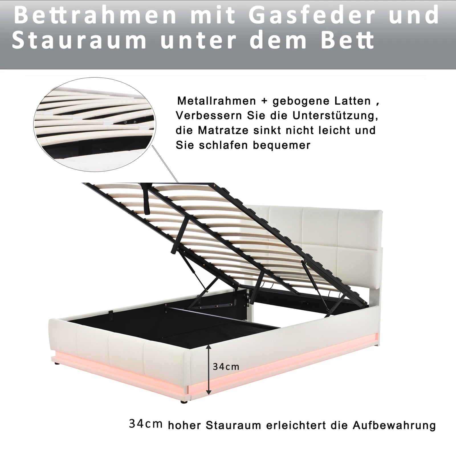 ROSAHQNDA Gepolstertes Bett mit Stauraum, 140 x 200 cm Bettgestell mit Kopfteil aus PU-Paneel, modernes Doppelbett, ohne Matratze
