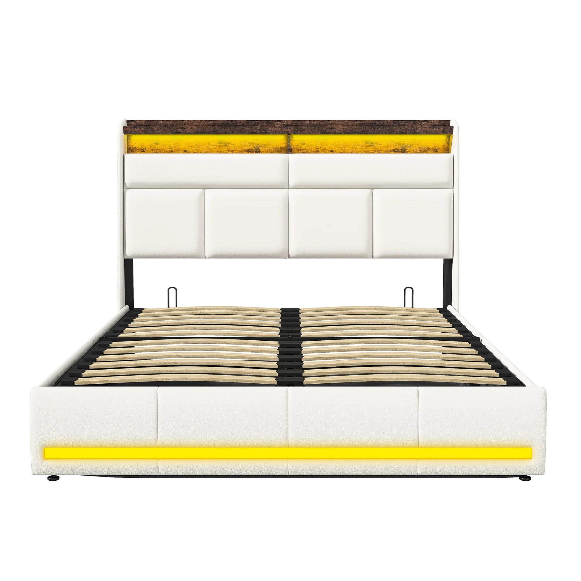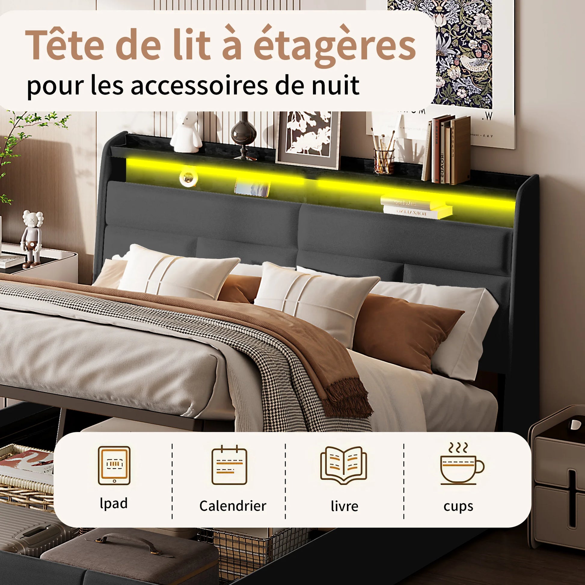 Rosahqnda gepolstertes Doppelbettsystem 140 x 200 cm, modernes Polsterbett, Kopfteil mit LED und USB-Ladestation, PU-Leder