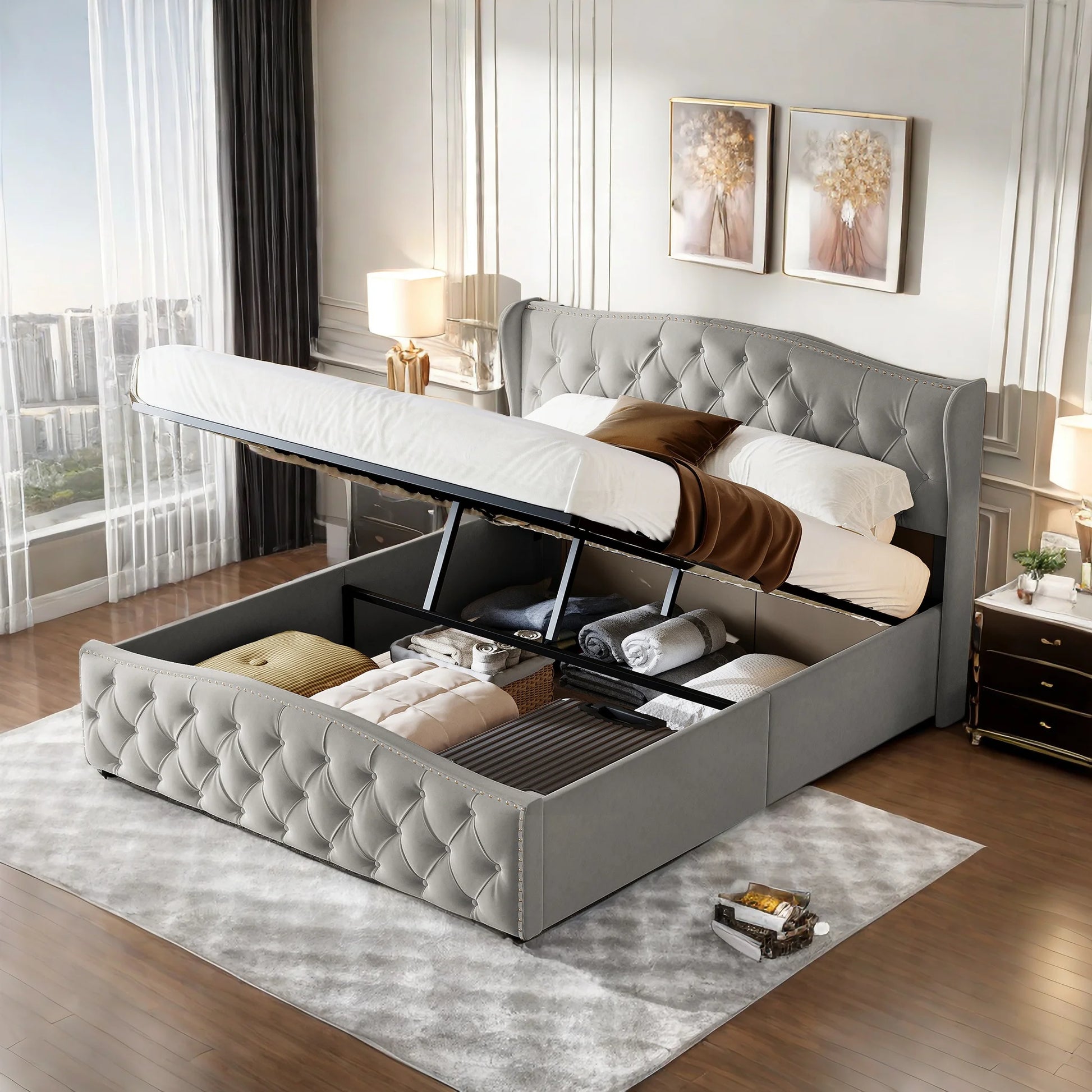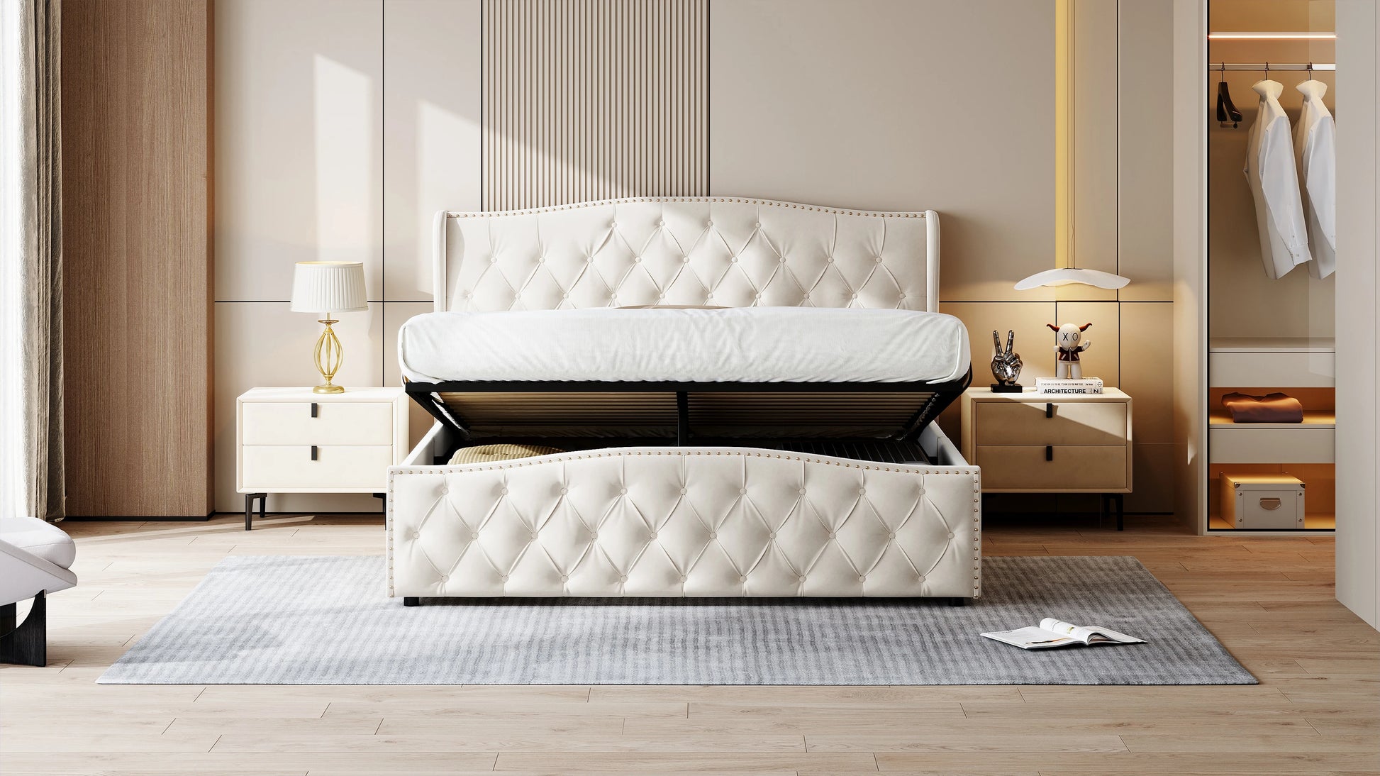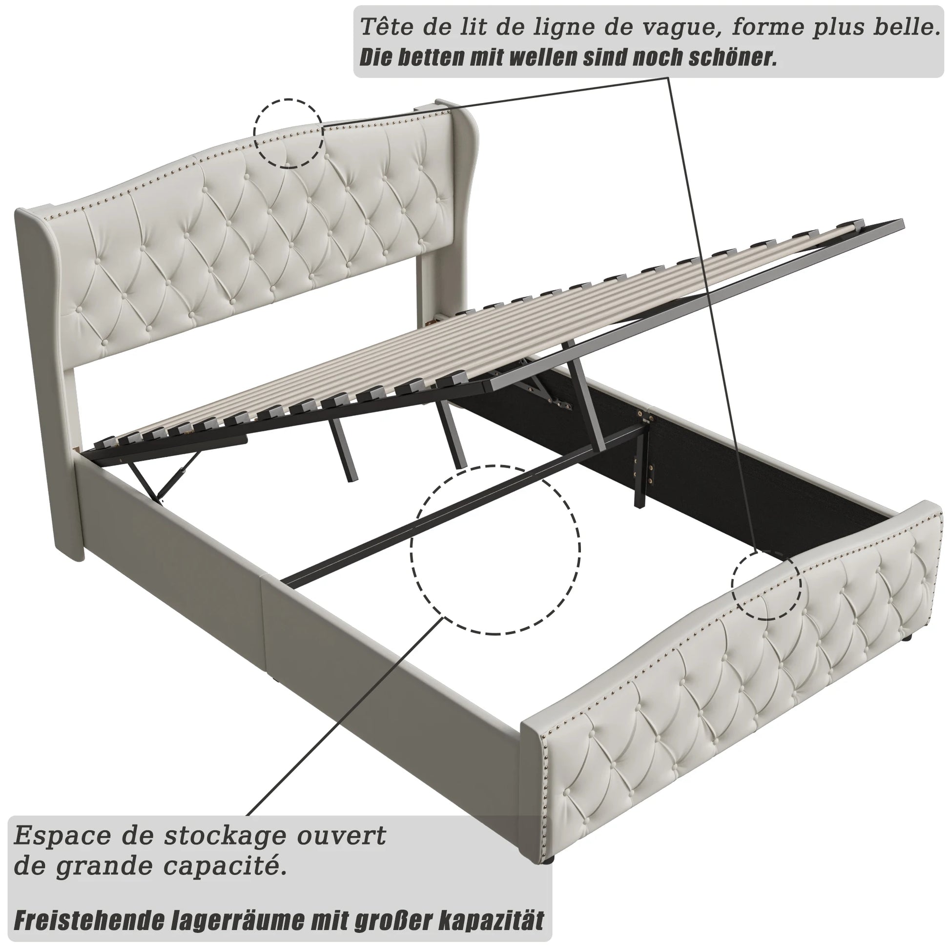Rosahqnda hydraulisches Bett im modernen Stil, Stilvolles Doppelbett für Jugendliche, Kinder und Erwachsene, ohne Matratze