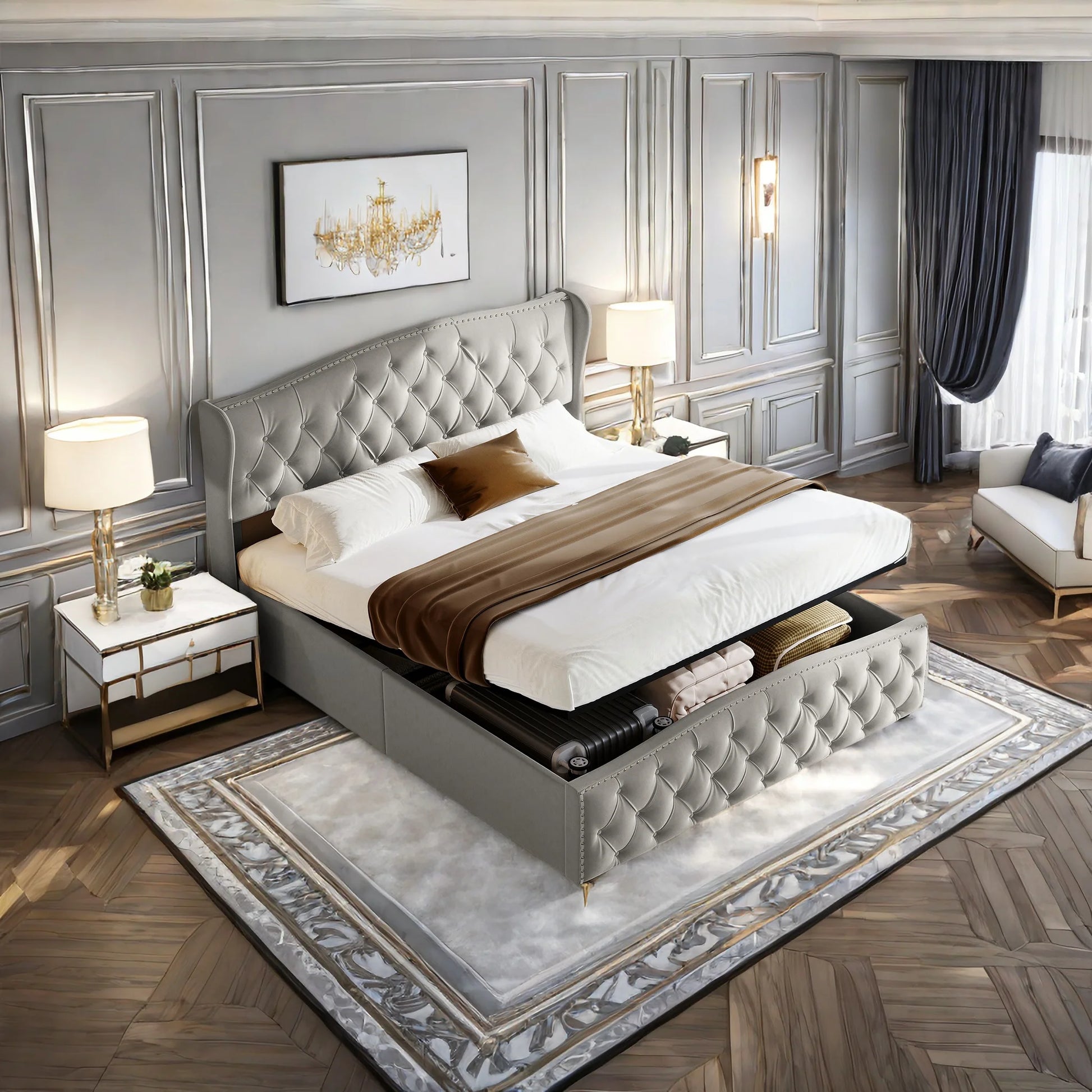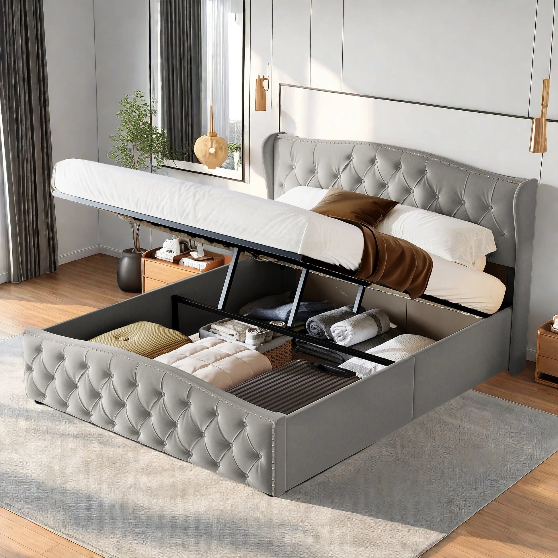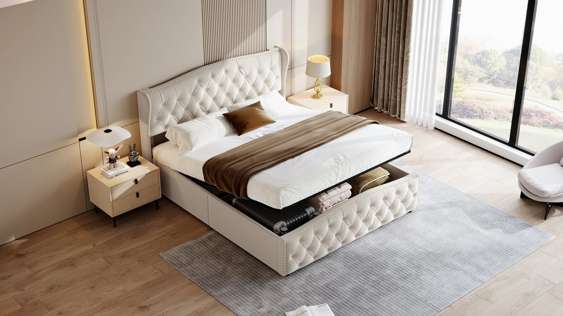 Rosahqnda hydraulisches Bett im modernen Stil, Stilvolles Doppelbett für Jugendliche, Kinder und Erwachsene, ohne Matratze