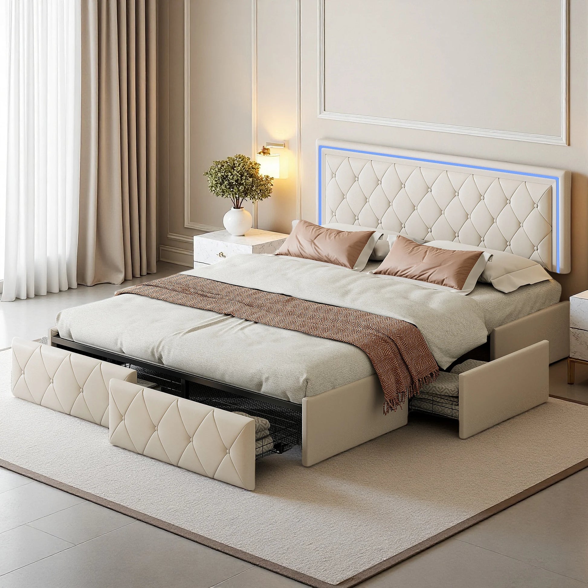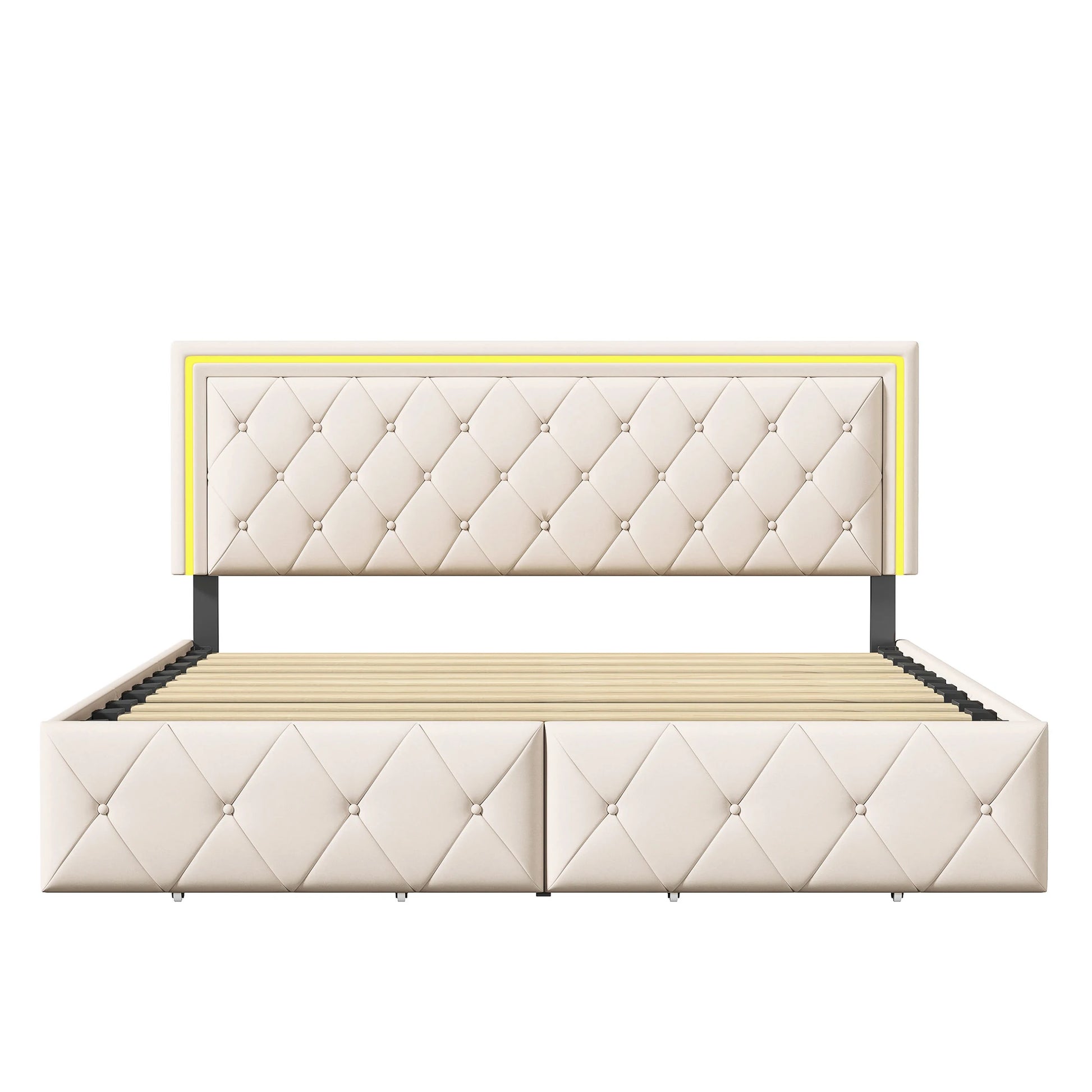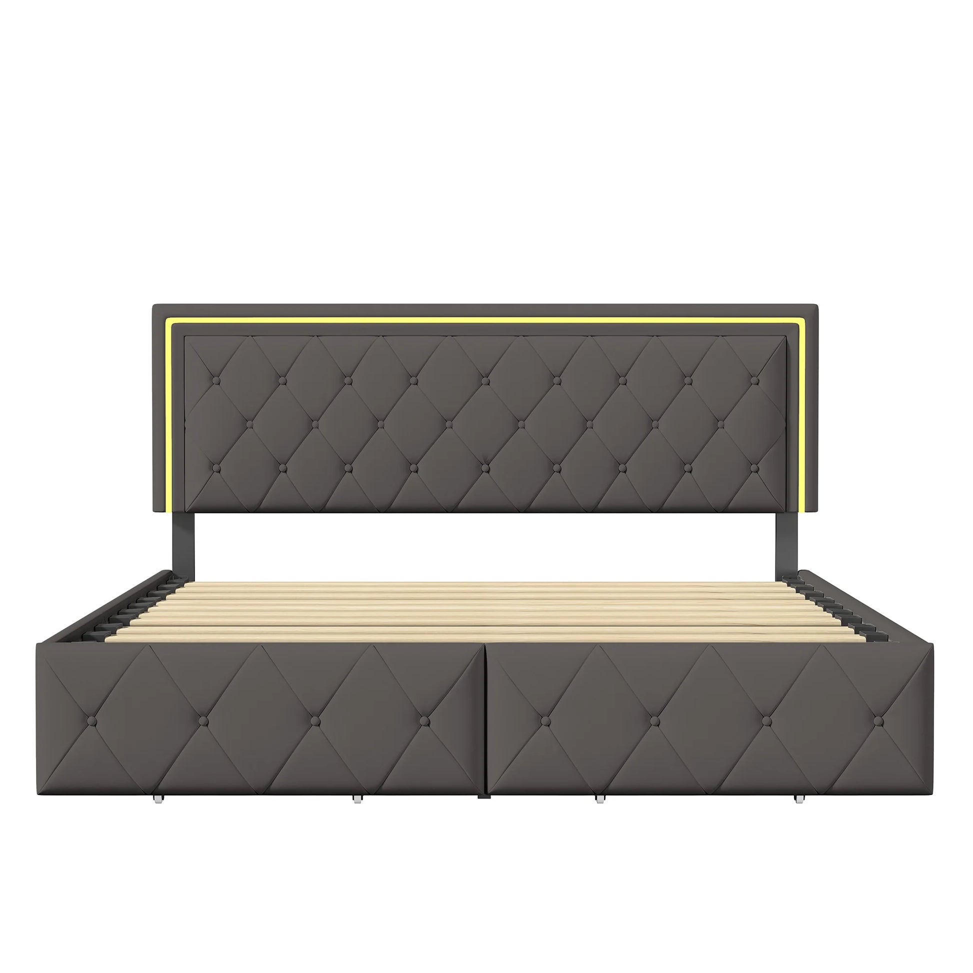 Rosahqnda Modernes Kunstlederbett mit Schubladen, stilvolles Doppelbett aus Kunstleder mit Stauraum, ohne Matratze