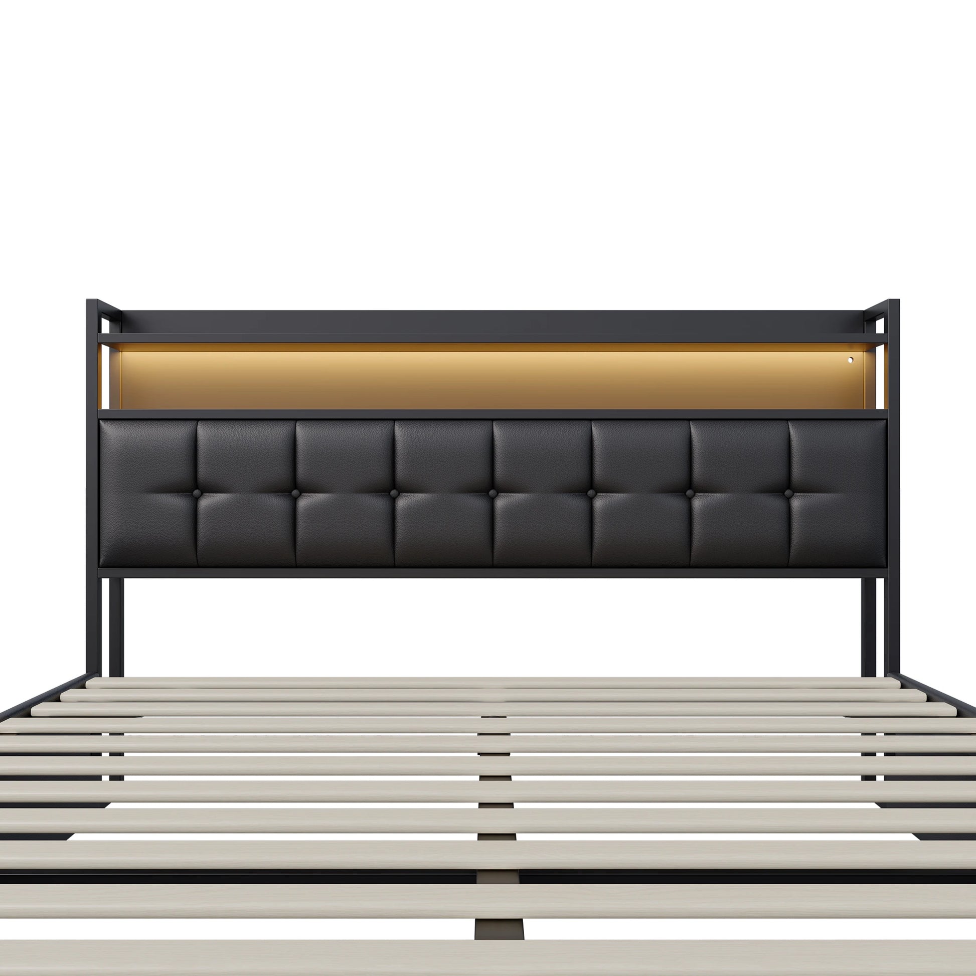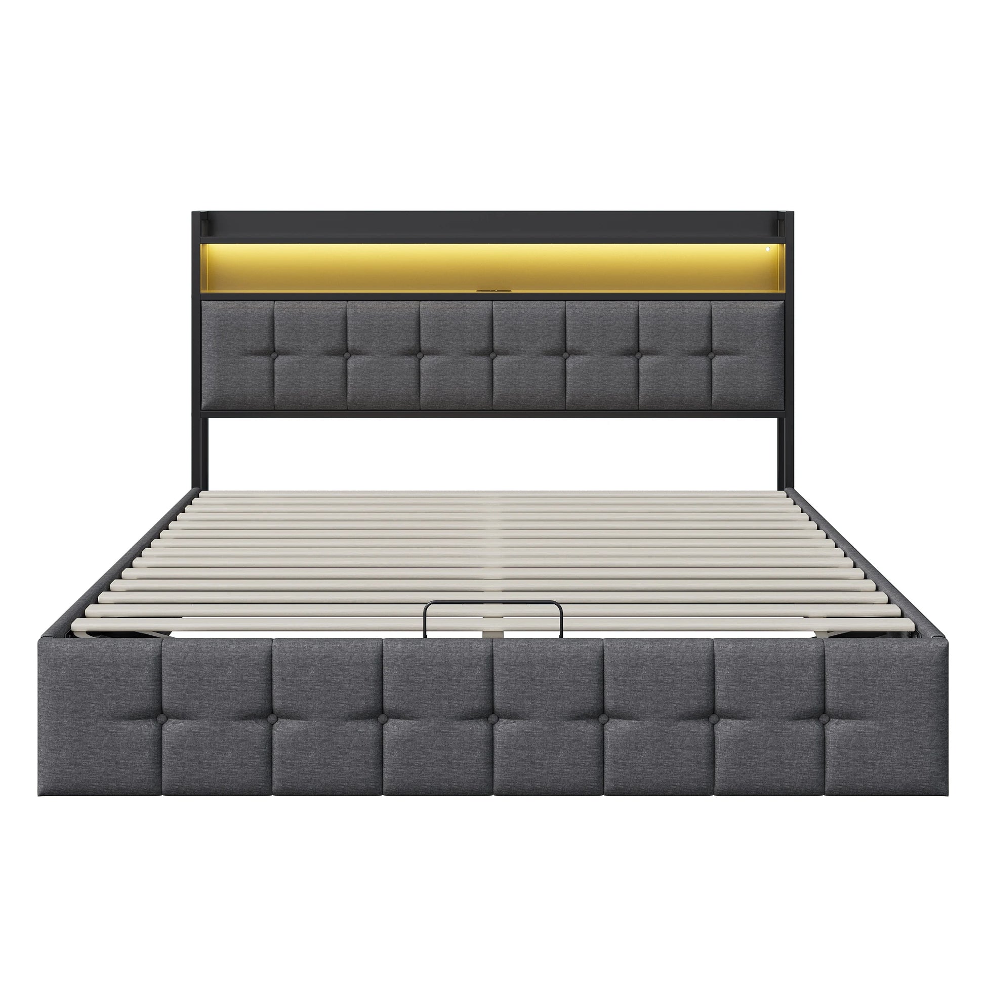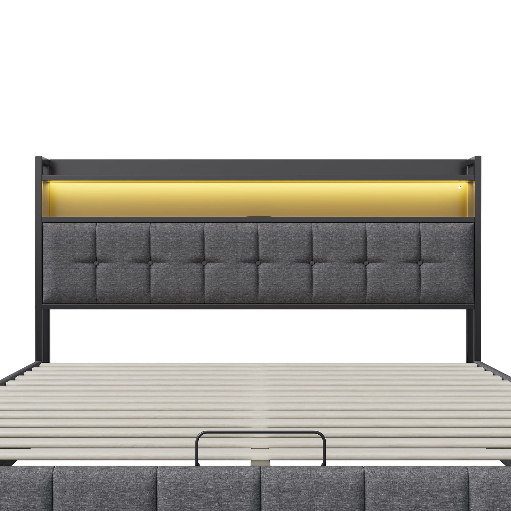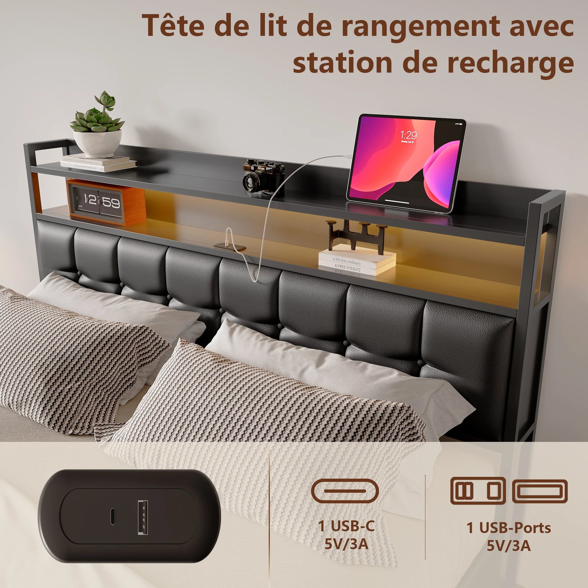 Rosahqnda Polsterbett 140 x 190 cm Doppelbett mit LED und USB, gepolsterter Bettrahmen mit Kopfteil und Lattenrost, Höhe 32 cm