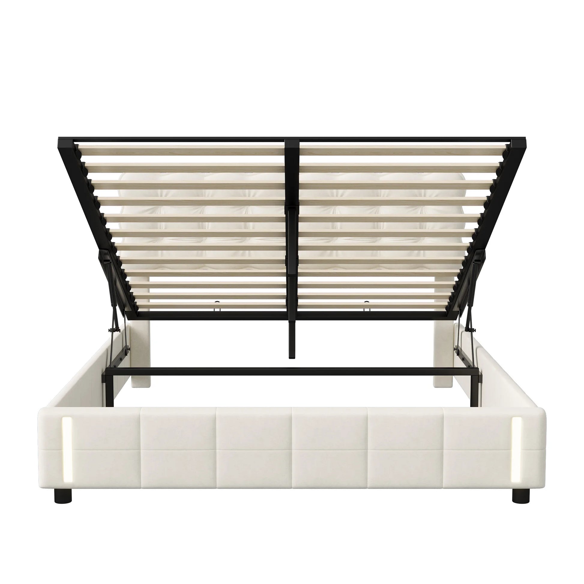 Rosahqnda Polsterbett 160 x 200 cm, Doppelbett mit LED, hydraulisches Stauraumbett, geeignet für Schlafzimmer, Mädchen, Erwachsene, Beige, Samt