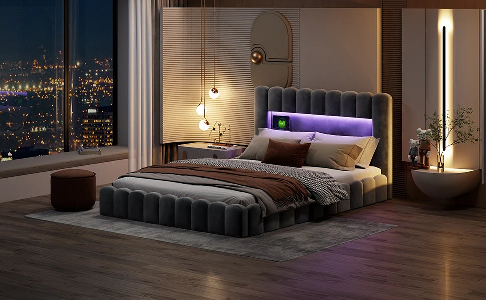Rosahqnda Polsterbett 180 x 200 cm, gepolsterter Doppelbettrahmen mit Kopfteil für Schlafzimmer und Jugendzimmer, Lattenrost aus Holz