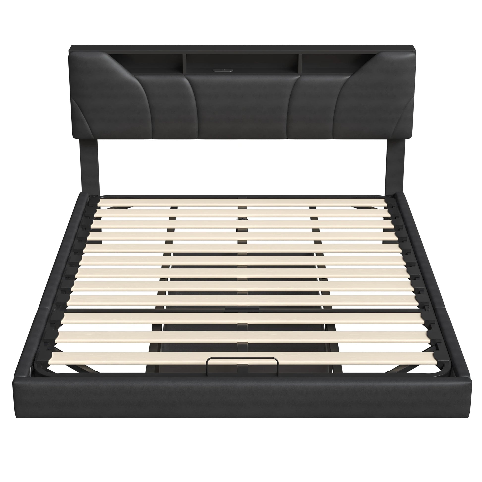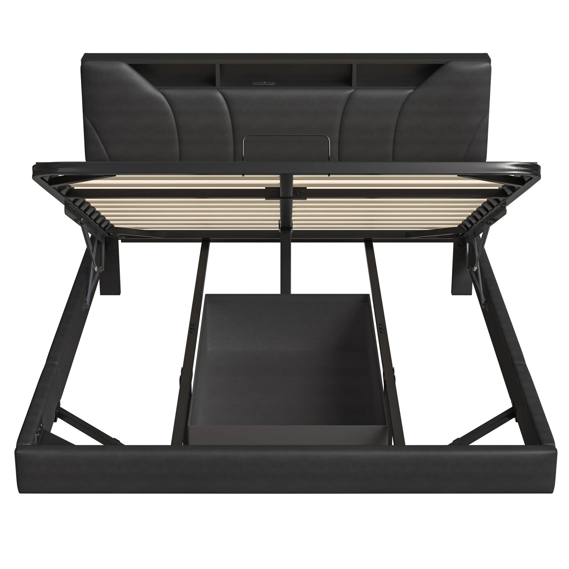 Rosahqnda Soft Bed,Air Pressure Storage Bed, with LED and USB Charging Ports,Adjustable Headboard,Bedroom,Adults,Youth,Black PU