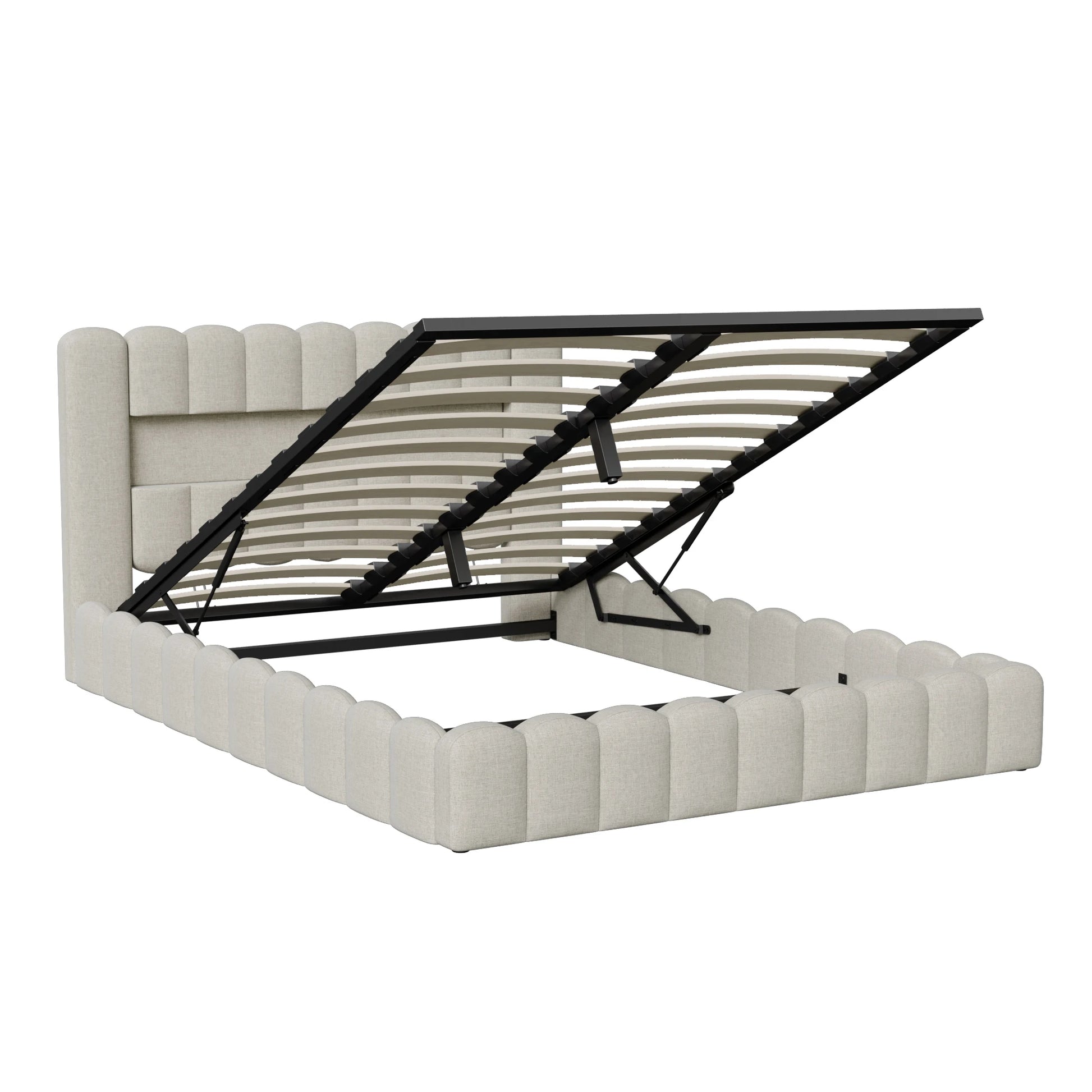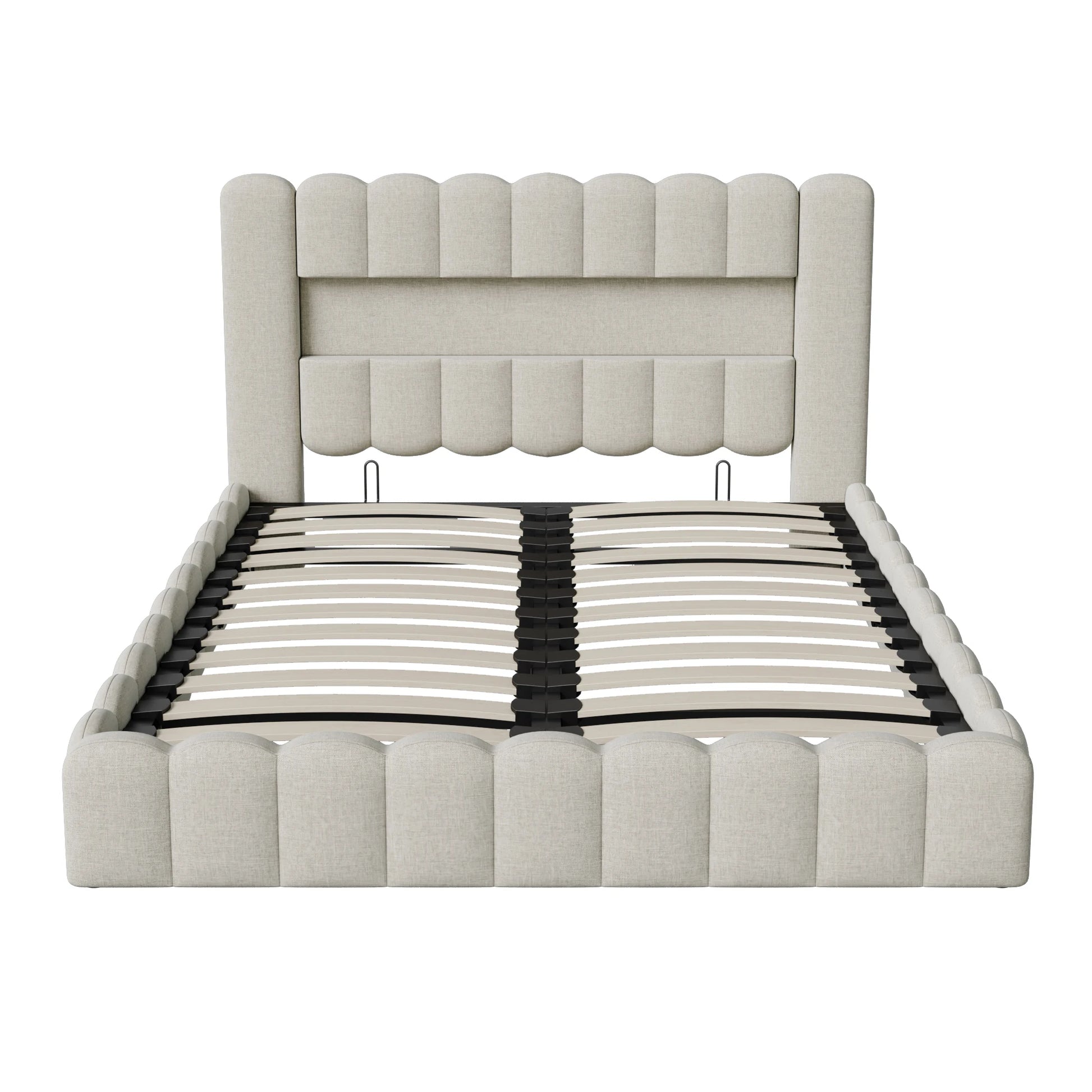 Rosahqnda Upholstered Bed 140x200cm,Storage Bed with LED and USB Charging,for Adults,Teen Bedrooms,Gray, Beige,Linen