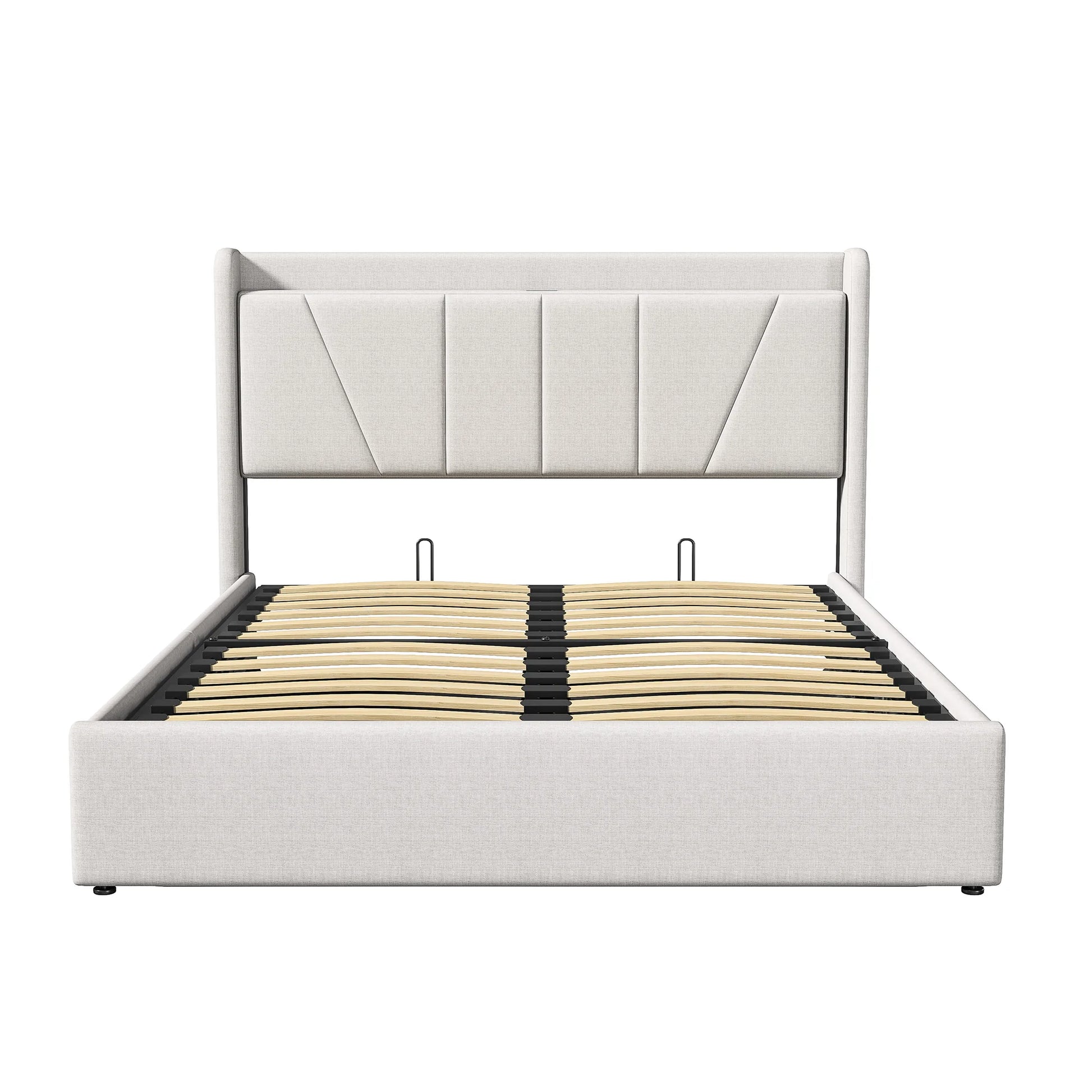 RosahqndaPolsterndes Doppelbett mit Stauraum unter dem Bett, LED-Kopfteil mit USB/Typ C, Bettgestell mit Stauraum und Lattenrost