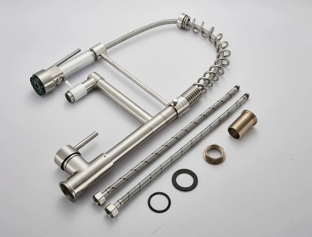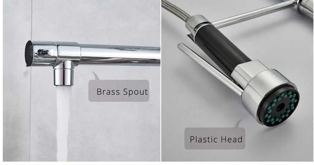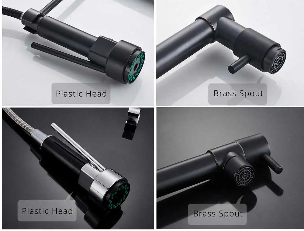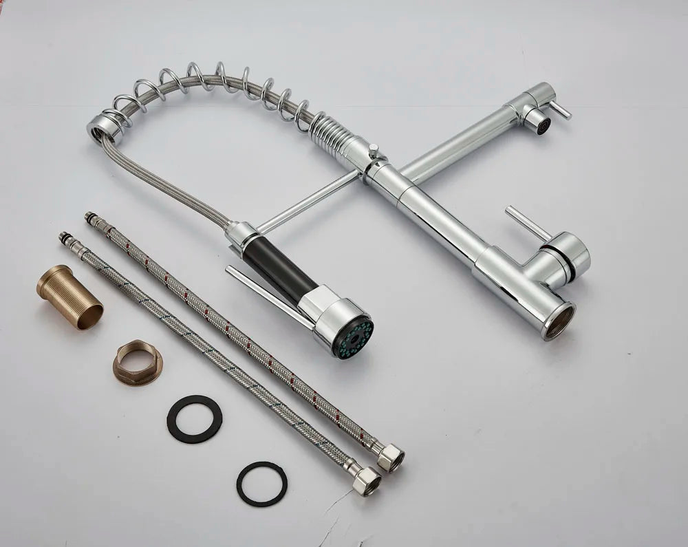 Rozin Black Spring Pull Down Kitchen Sink Faucet Deck Mounted Dual Spout Hot & Cold Water Mixer Tap Crane,Single Handle,SUS 304