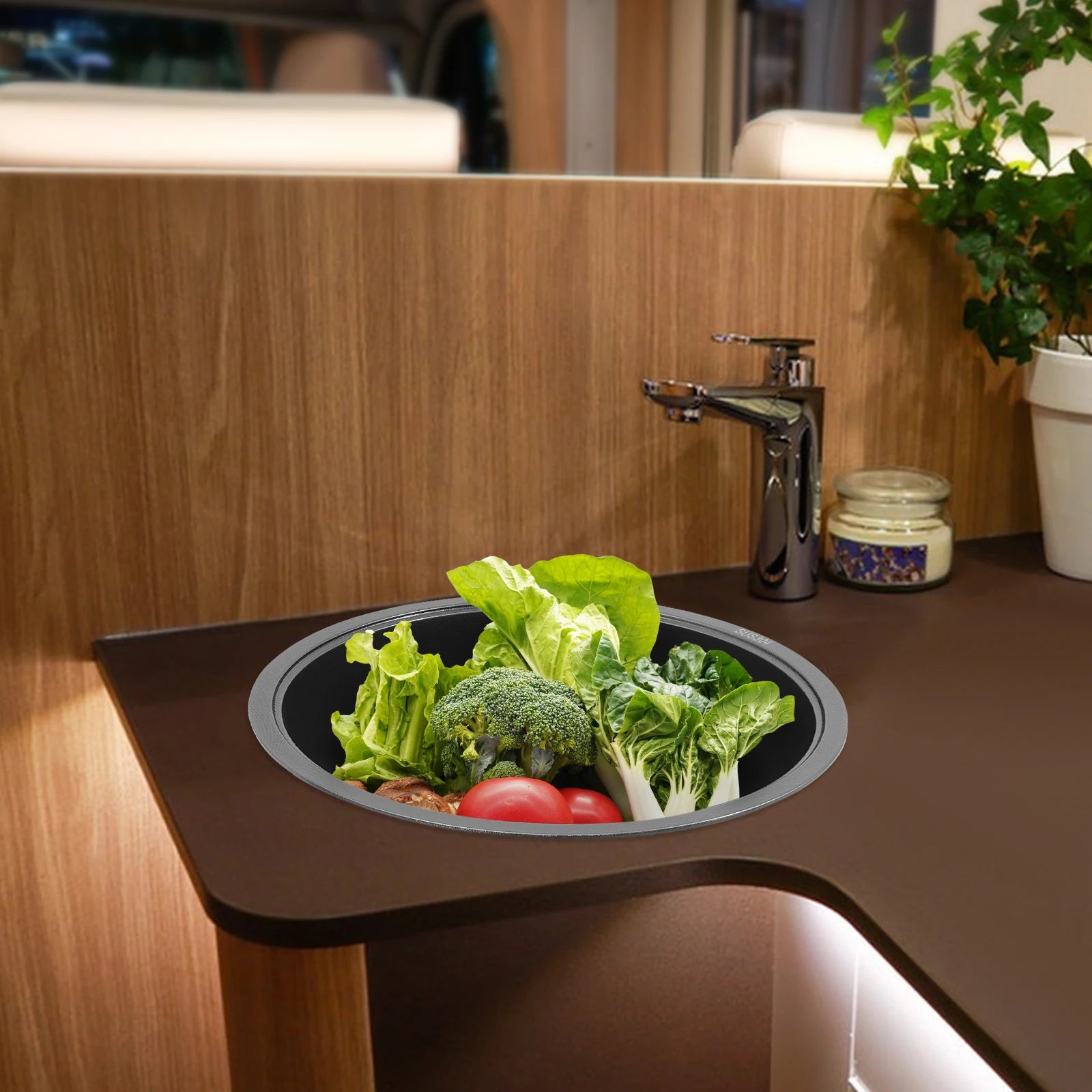 Rundes Küchenspüle aus Edelstahl 304, hitzebeständiges Küchenspüle, Einzelbecken, schnelle Entwässerung zum Geschirrspülen von Gemüse