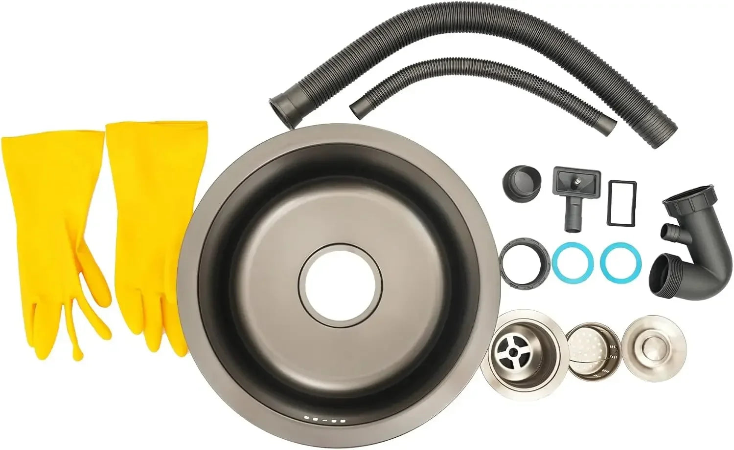 Rundes Waschbecken aus Edelstahl, moderner minimalistischer Stil, Küchen- und Badezimmerwaschbecken, Nano-Beschichtung, Einzelwaschbecken für Zuhause, Restaurants