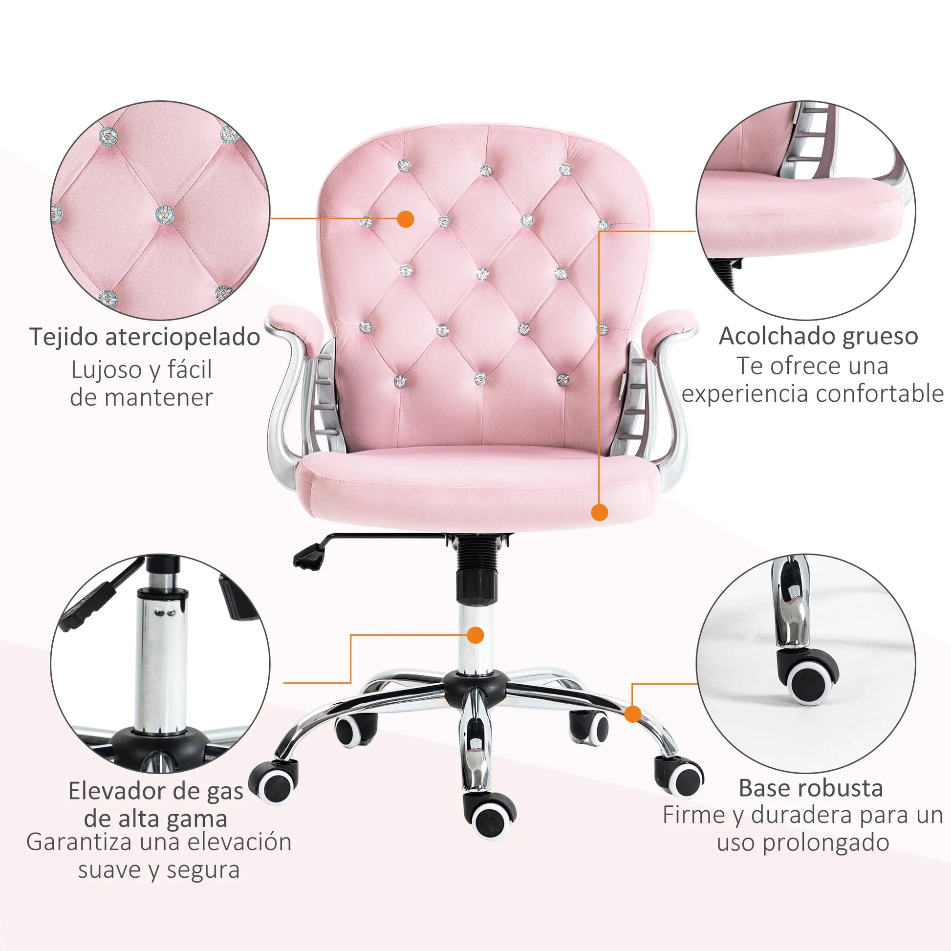 Samt-Schreibtischstuhl mit höhenverstellbaren Armlehnen und Rautendekorationen 59,5 x 60,5 x 93–103 cm, Rosa