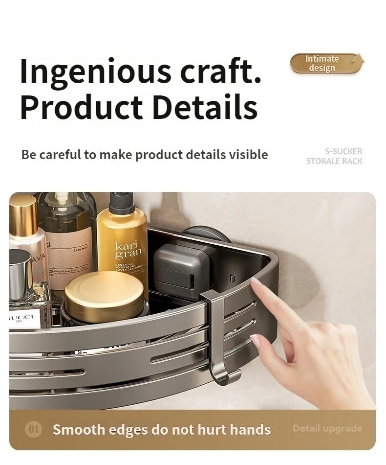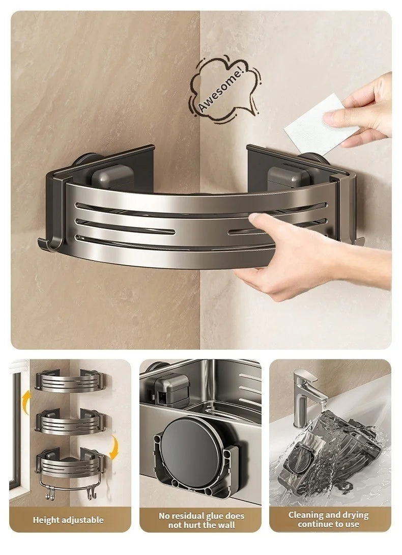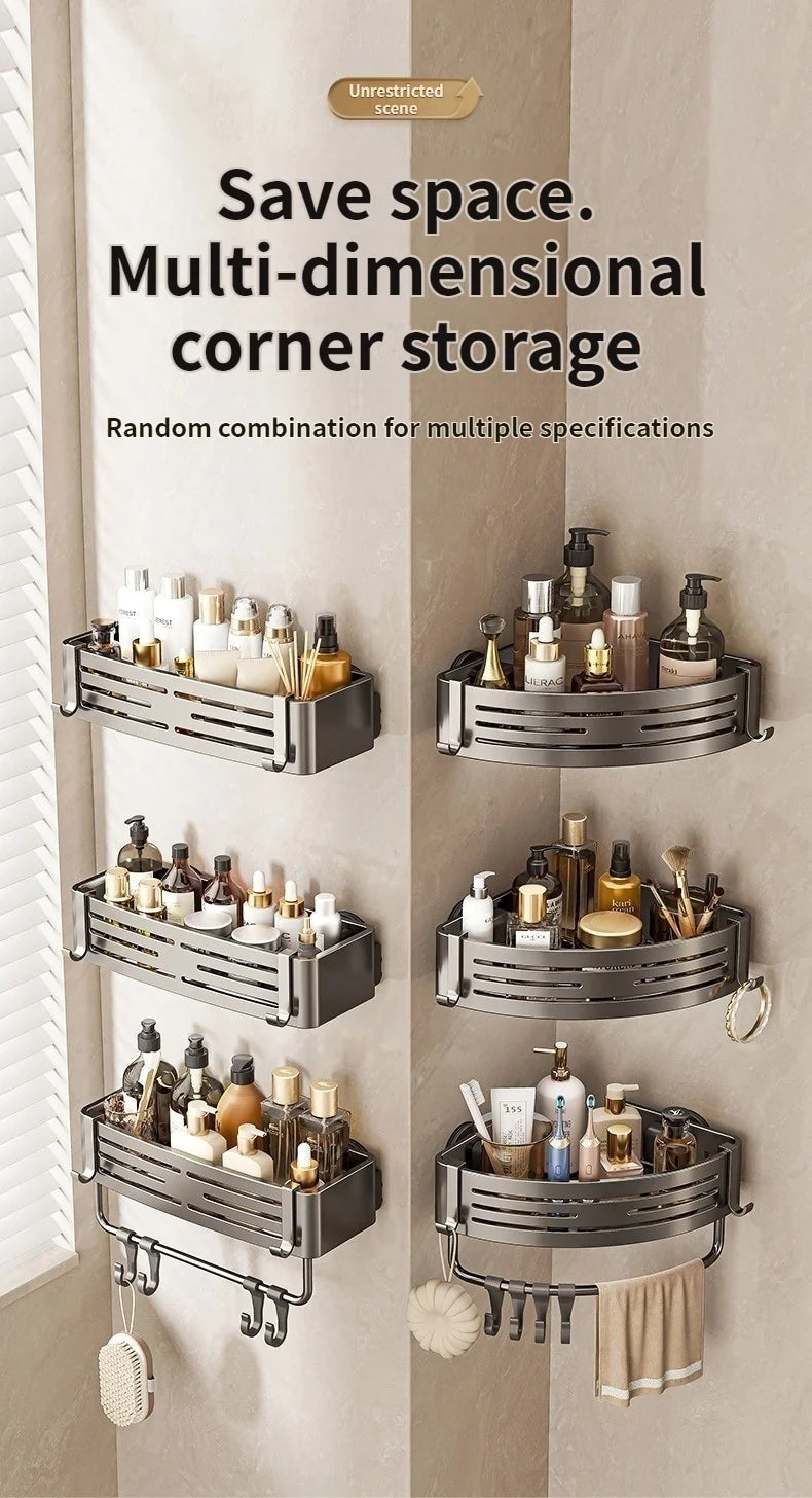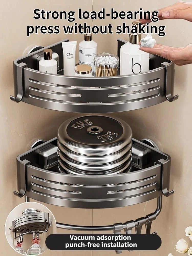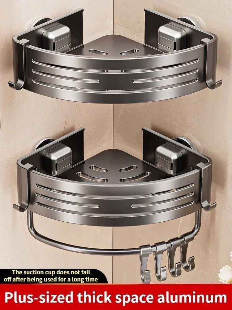 Saugnapf perforationsfreier Raum Aluminium Badezimmer Lagerregal Badezimmer Dreieckskorb Wandaufhänger Badezimmer Eckaufbewahrung