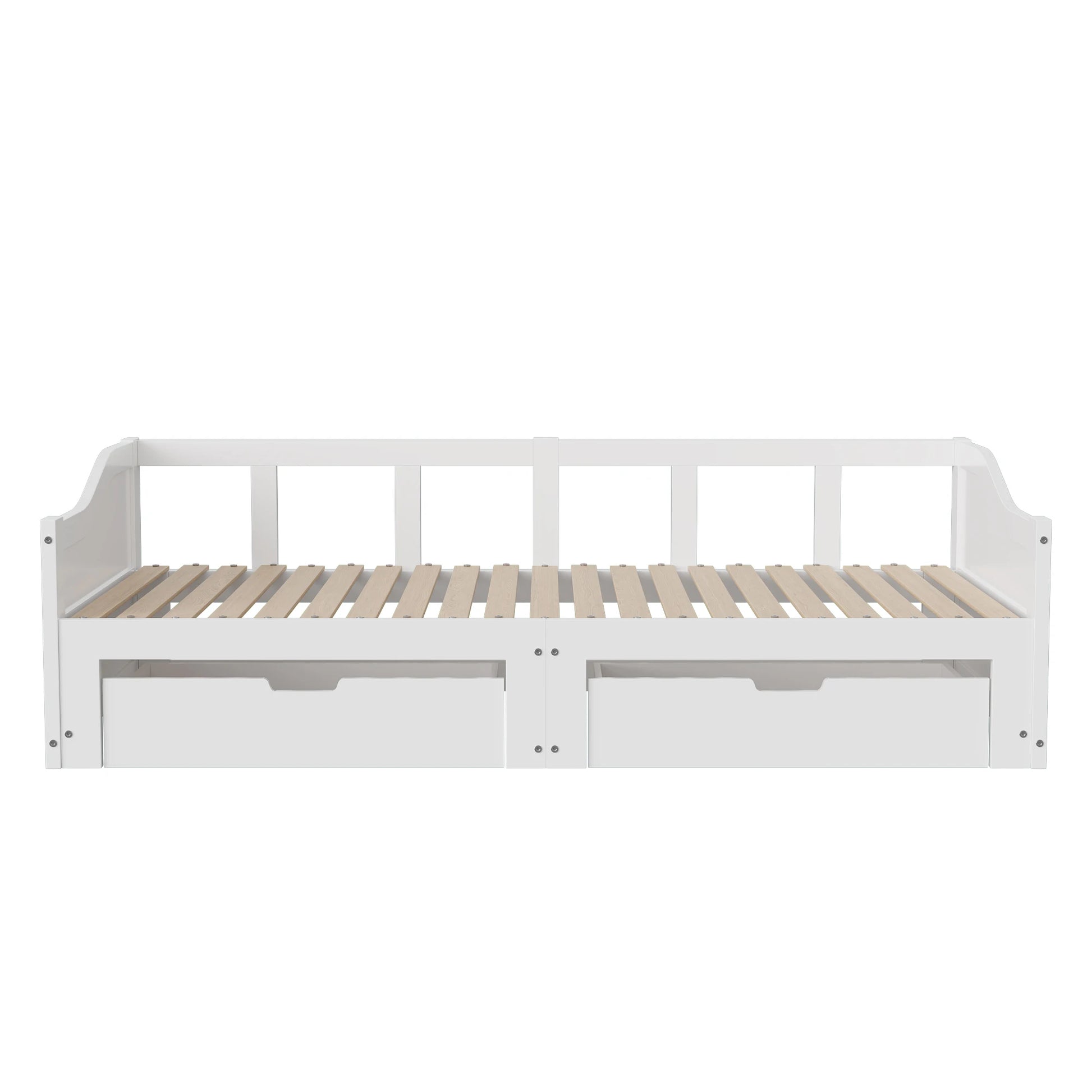 Schlafsofa 90/180 x 200 cm, Doppelbett, Einzelbett mit ausziehbarer Schublade, mit Lattenrost, Massivholz, keine Matratze