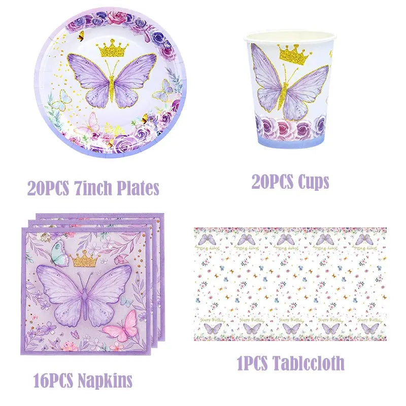 Schmetterling Geburtstag Party Dekoration Mädchen Einweg Geschirr Set Pappteller Tasse Ballon Tischdecke Schmetterling Thema Liefert