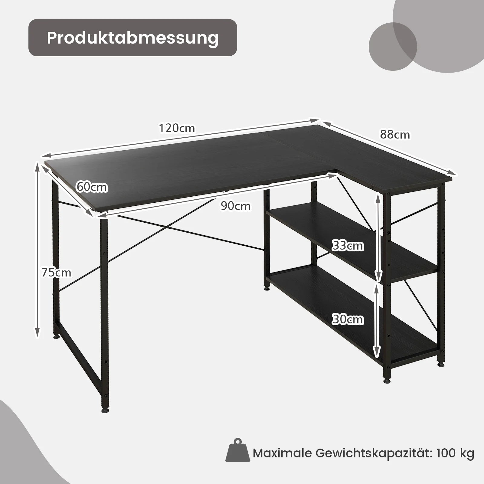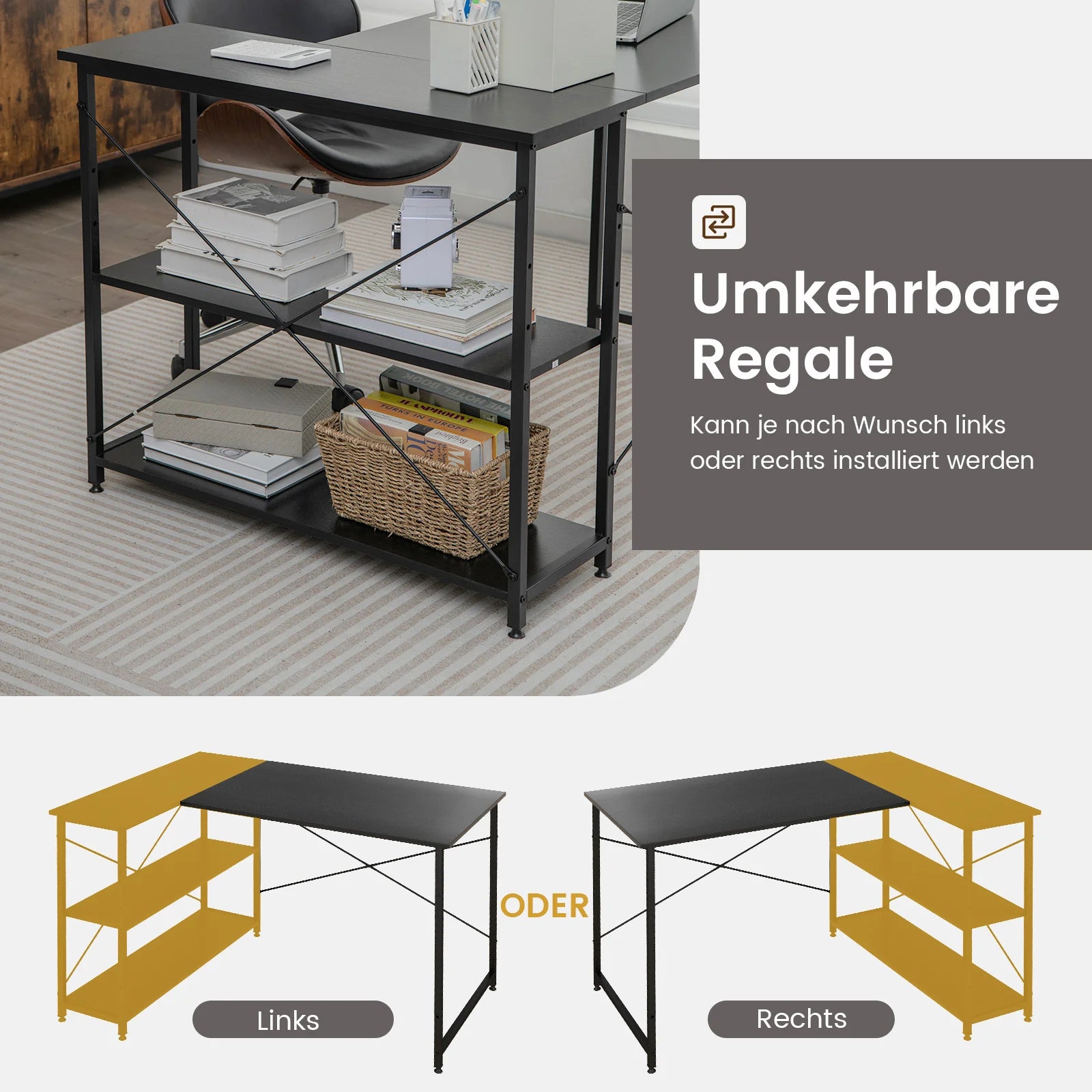 Schreibtisch L-Form, Computertisch mit Regal rechts oder Links, Eckschreibtisch mit Ablagefächern, Ecktisch Bürotisch für