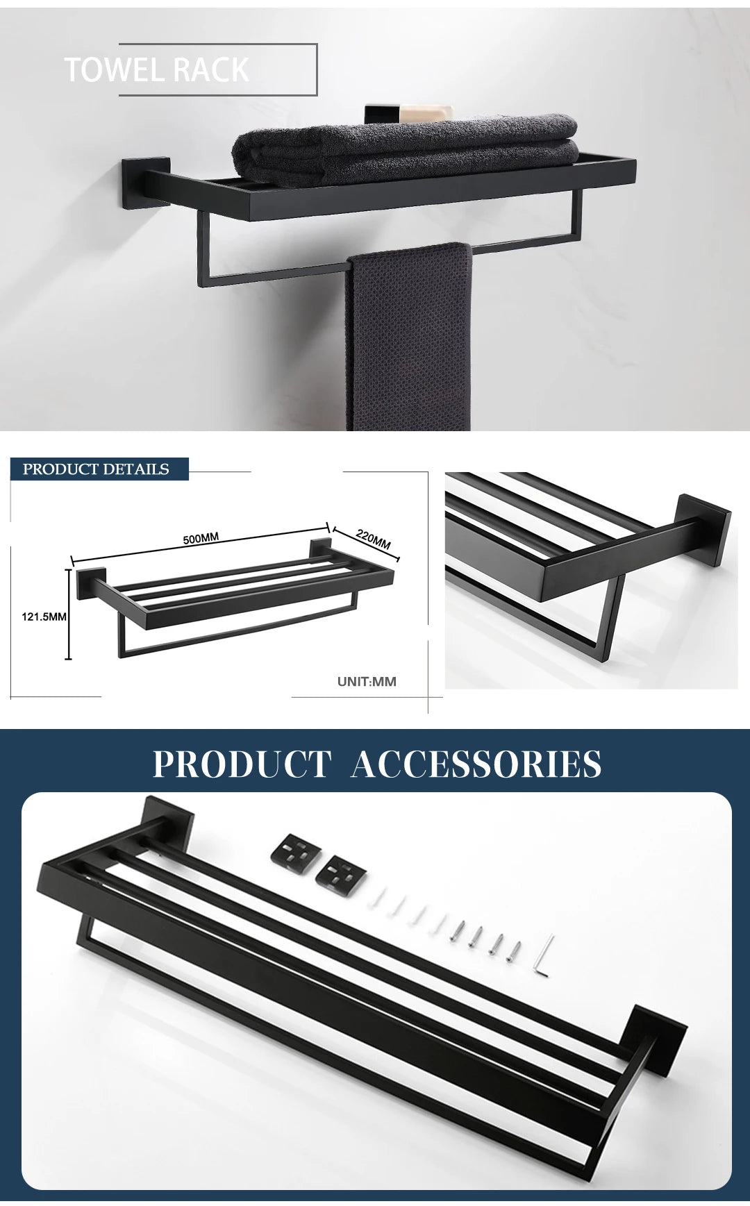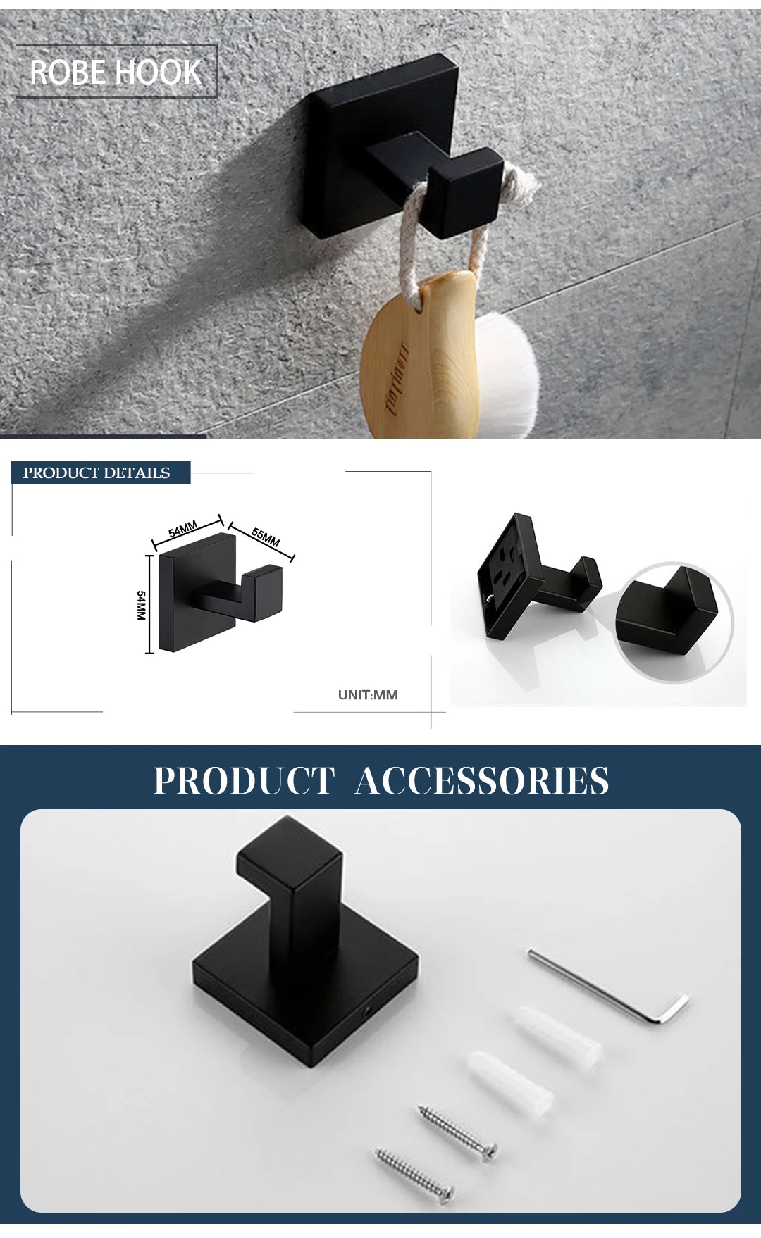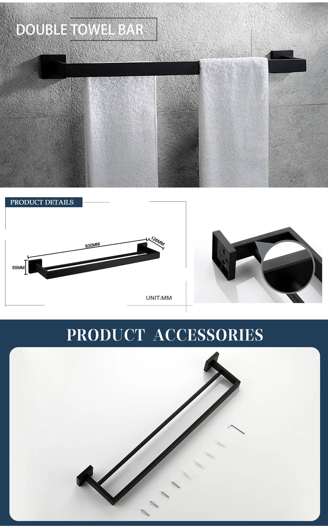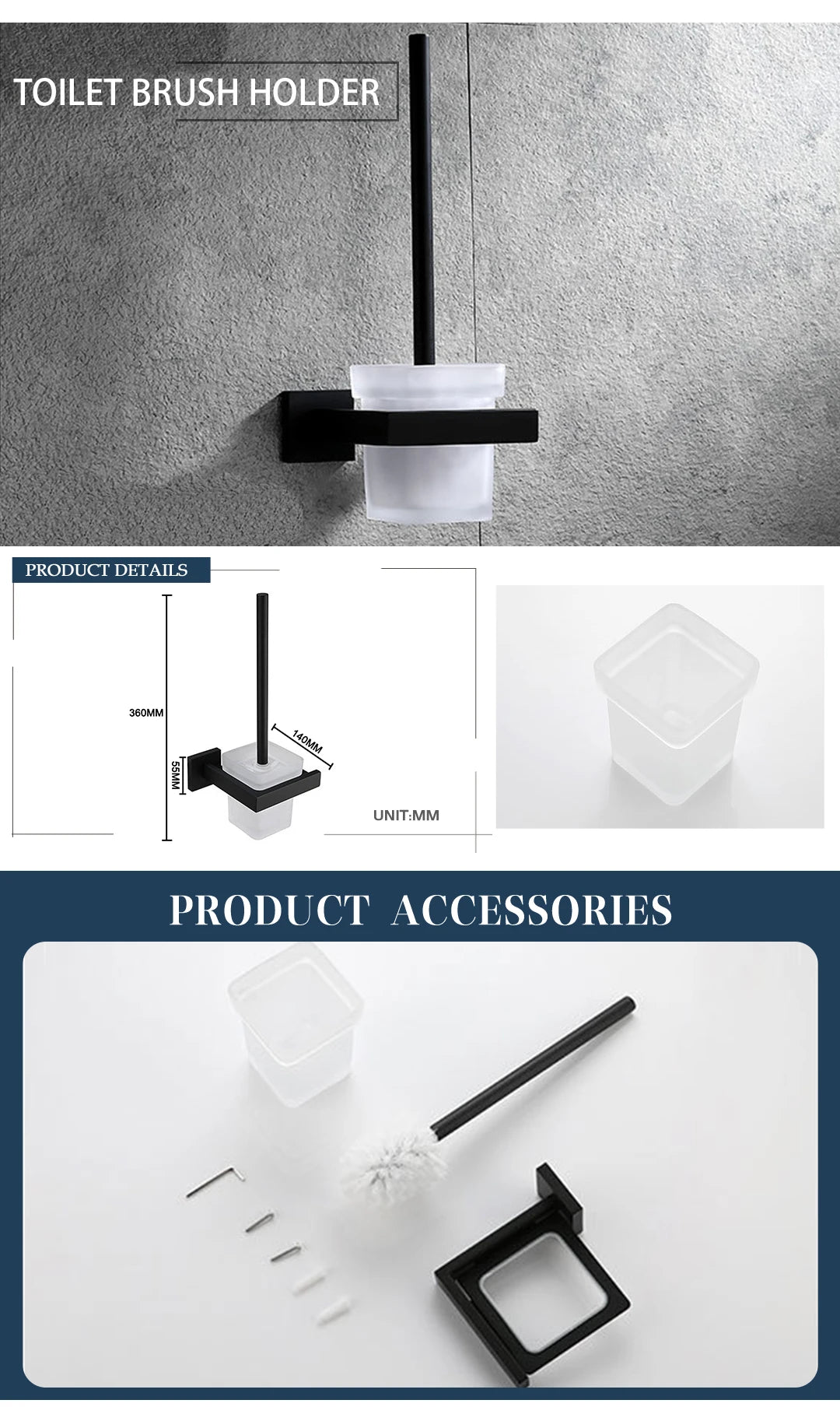 Schwarz Bad zubehör Edelstahl Set Wandre gal Handtuch halter Handtuch halter Taschentuch halter Kleider haken Toiletten bürste Anhänger