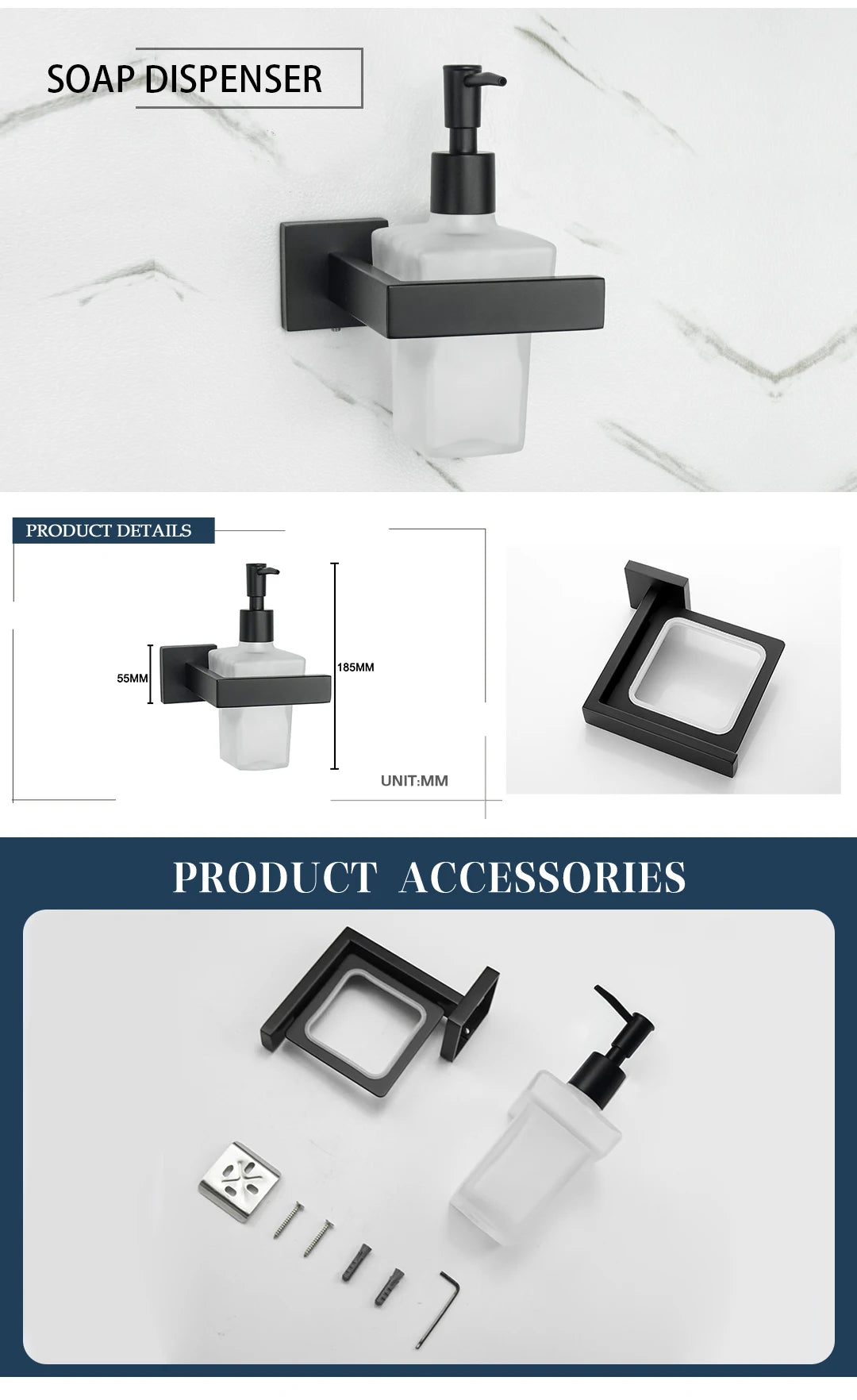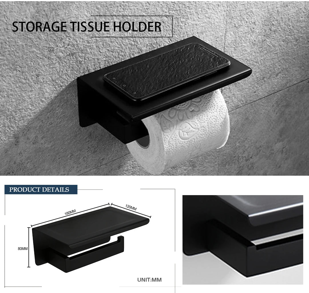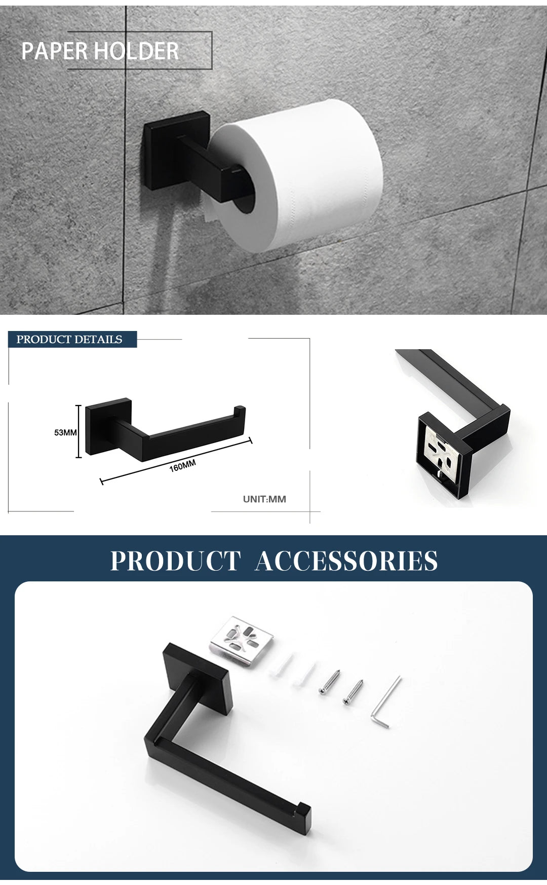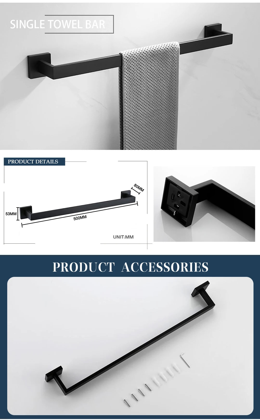 Schwarz Bad zubehör Edelstahl Set Wandre gal Handtuch halter Handtuch halter Taschentuch halter Kleider haken Toiletten bürste Anhänger