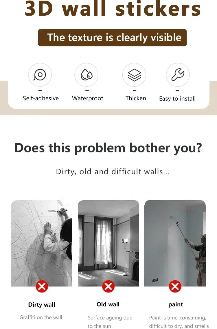 Selbstklebende 3D-Leinenschaum-PVC-verdickte wasserdichte Hintergrundwandrenovierungs-Tapete, Wandaufkleber für Schlafzimmer und Wohnzimmer