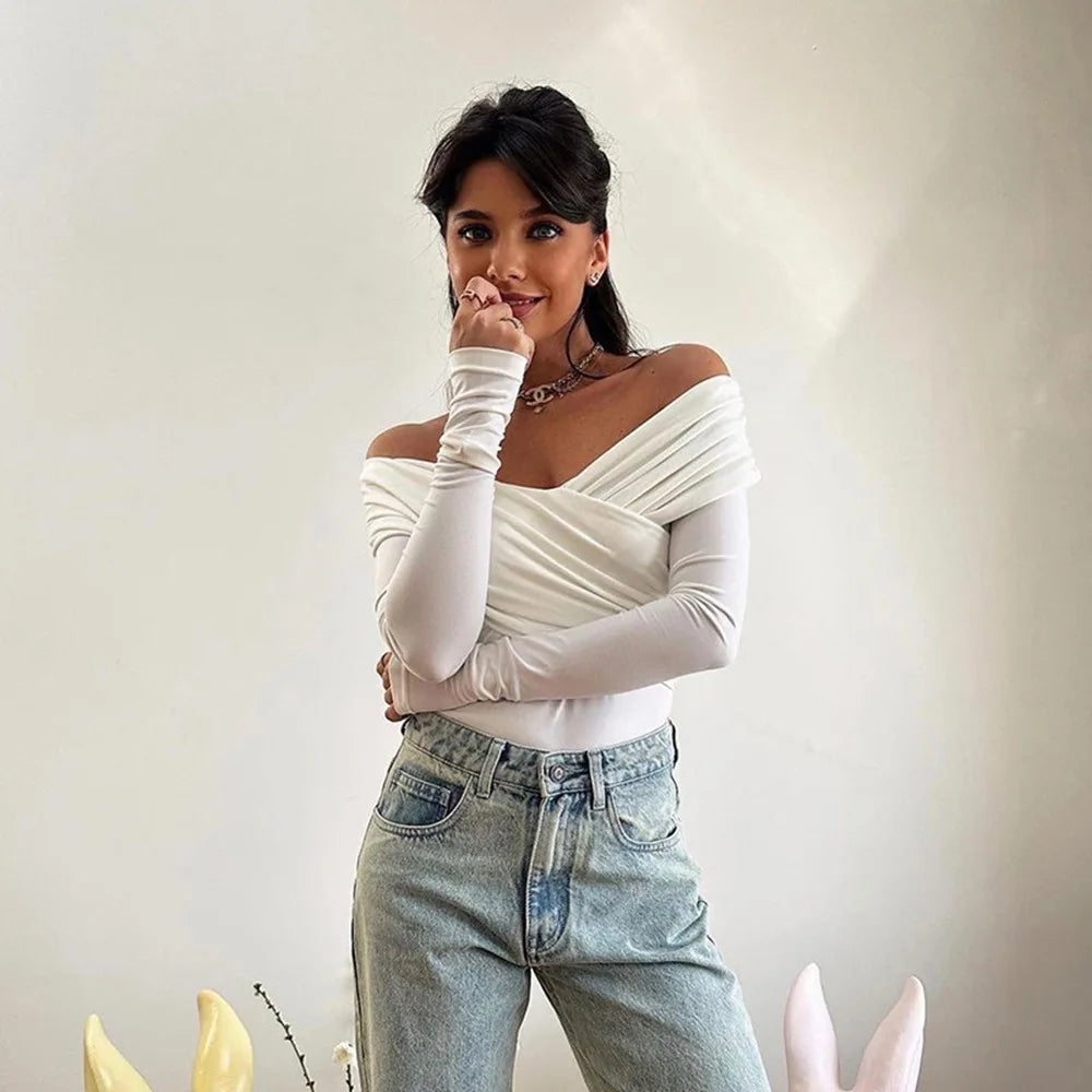 Sexy Hot Girl Slim Jumpsuits Women Fashion Solid Color Folds Corset Bodycon Crossed Bodysuits Long Sleeves Trendy Lady Rompers